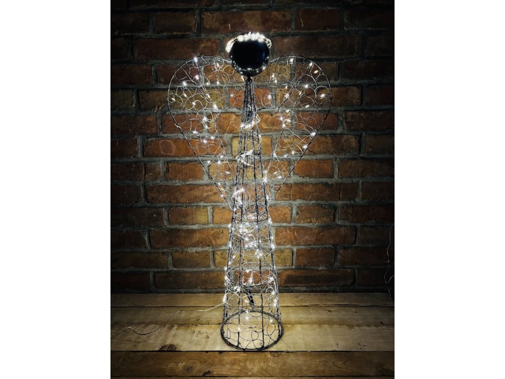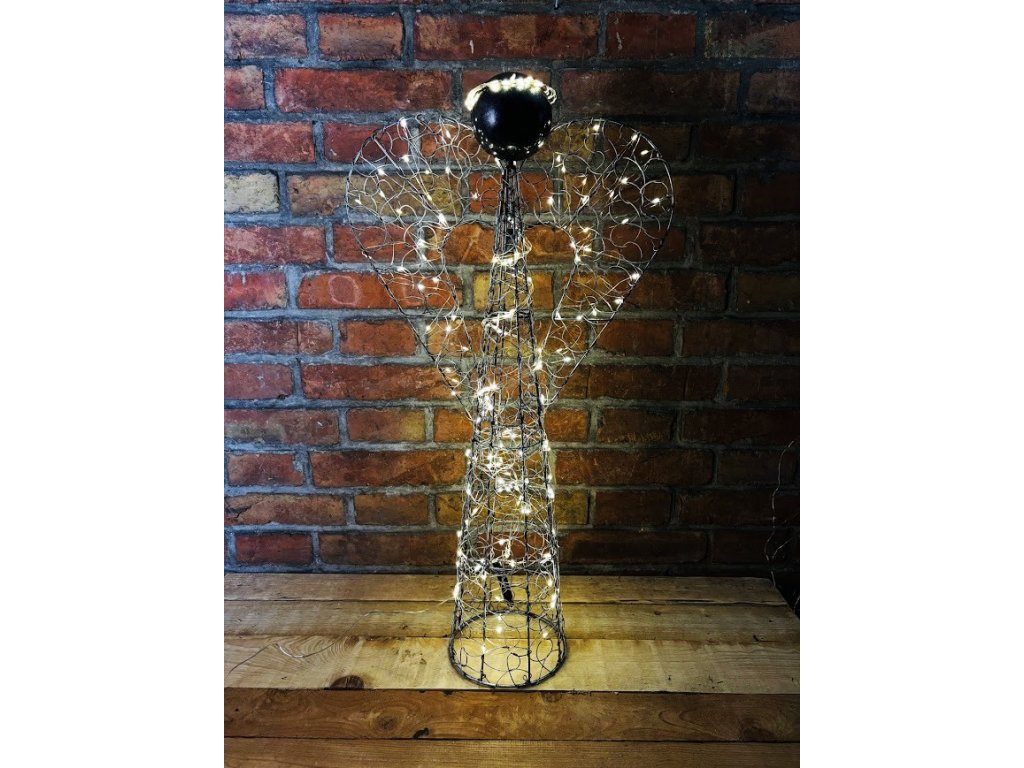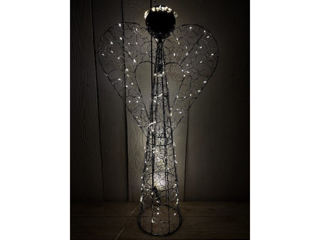 Kovový drátěný anděl s jemnými LED světýlky, které vytvářejí příjemné teplé světlo. Dekorace působí lehce a moderně, krásně vynikne v interiéru i na kryté terase. Ideální doplněk vánoční výzdoby nebo originální dárek pro milovníky světelných dekorací. Světýlka jsou součástí, jen je třeba si je na anděla namotat. Jsou do elektriky.