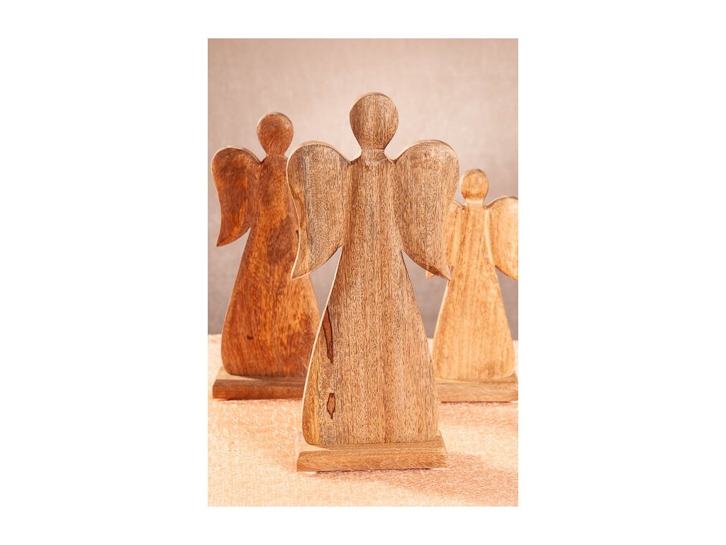 Originální ruční práce, která v sobě spojuje přírodní krásu a jemnost. Tento anděl z kvalitního mangového dřeva je vhodný jako celoroční dekorace – na poličku, komodu nebo jako ochránce domova.