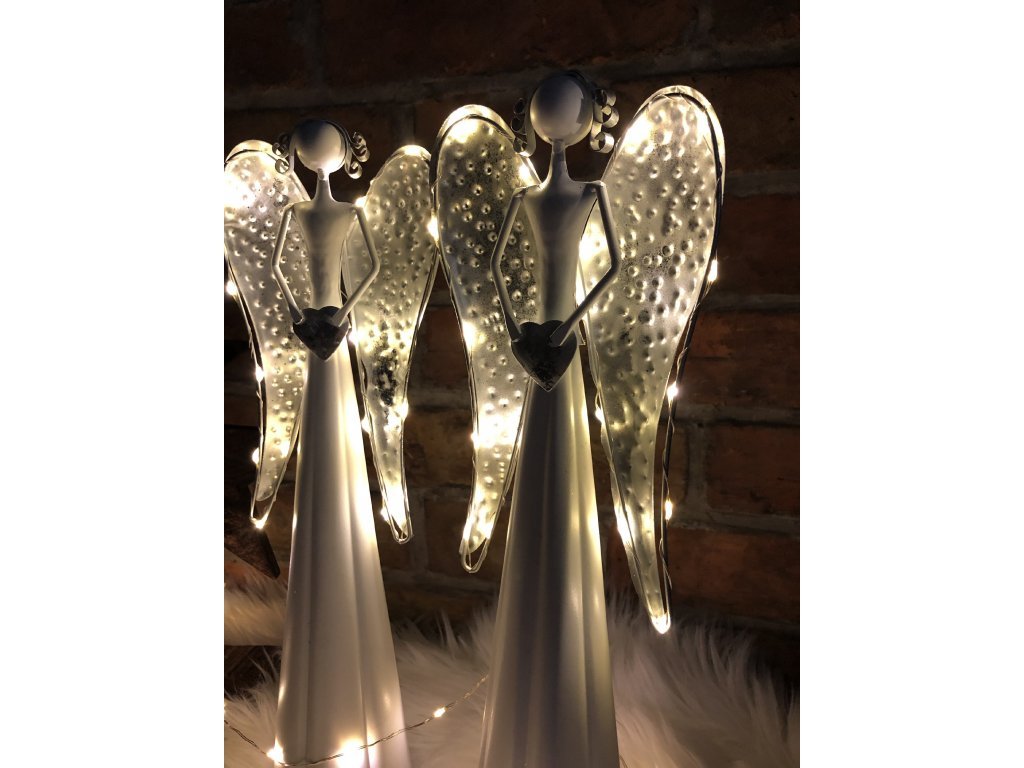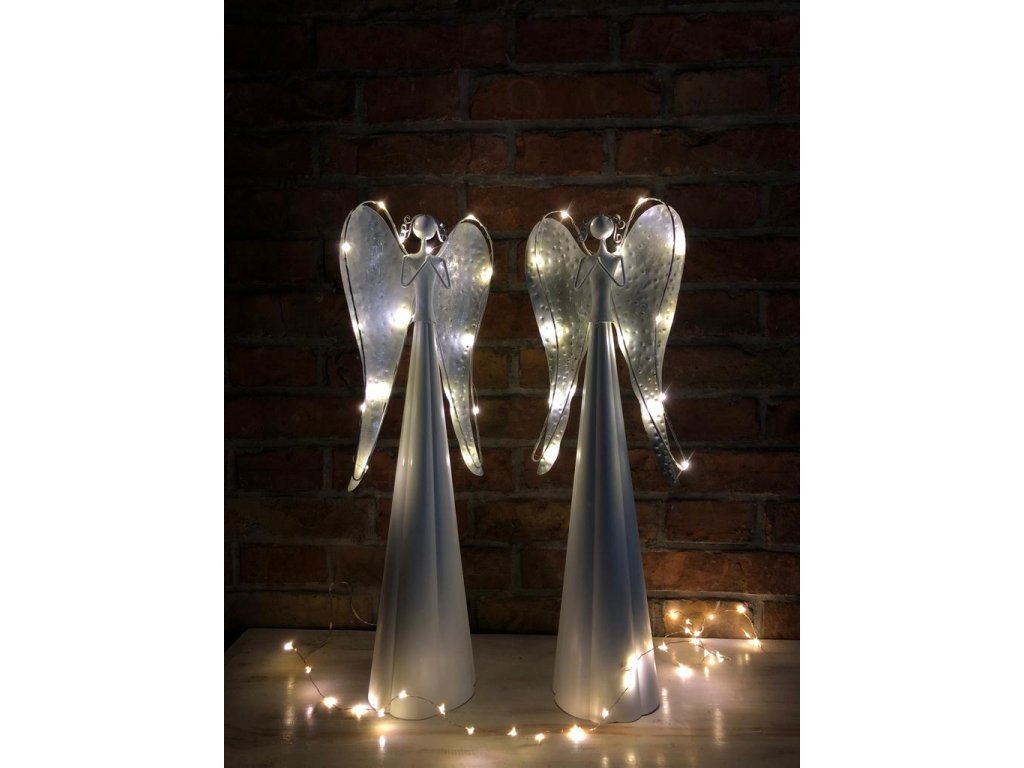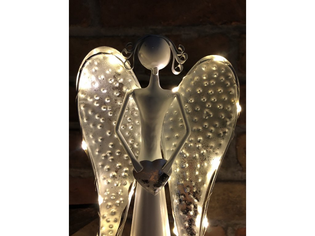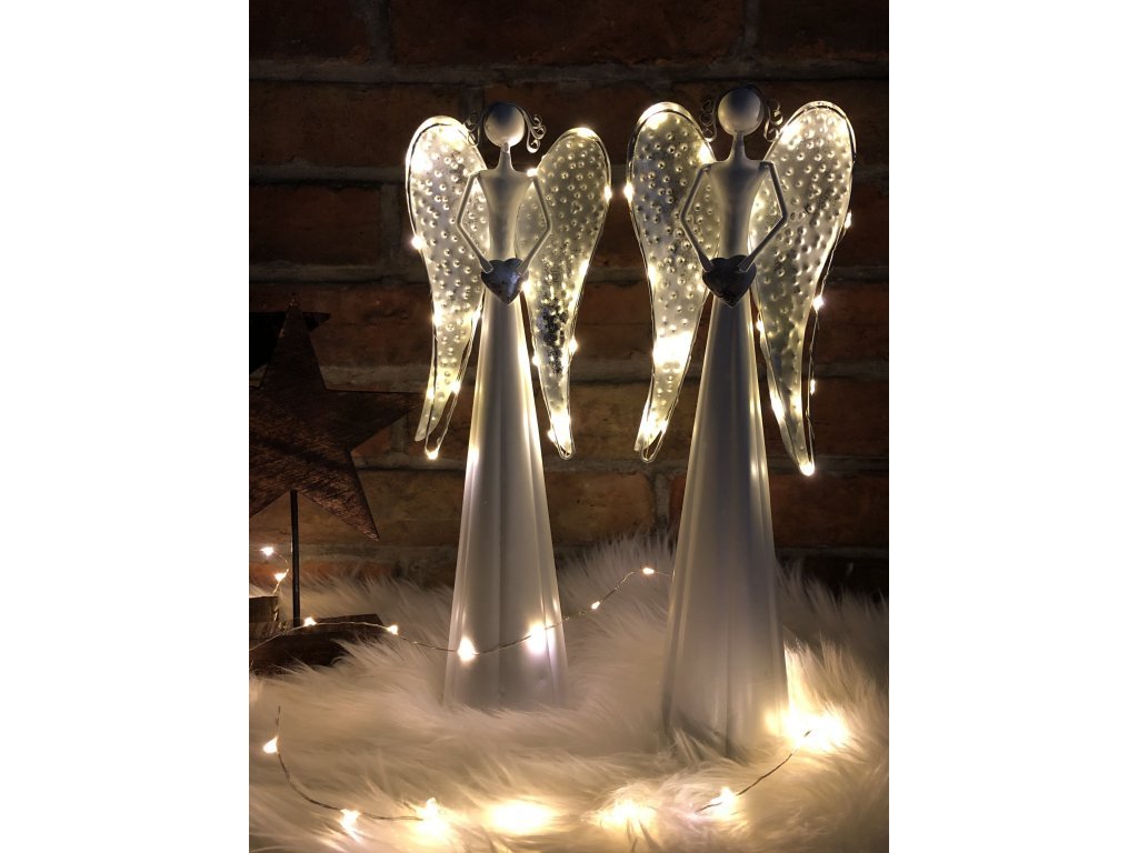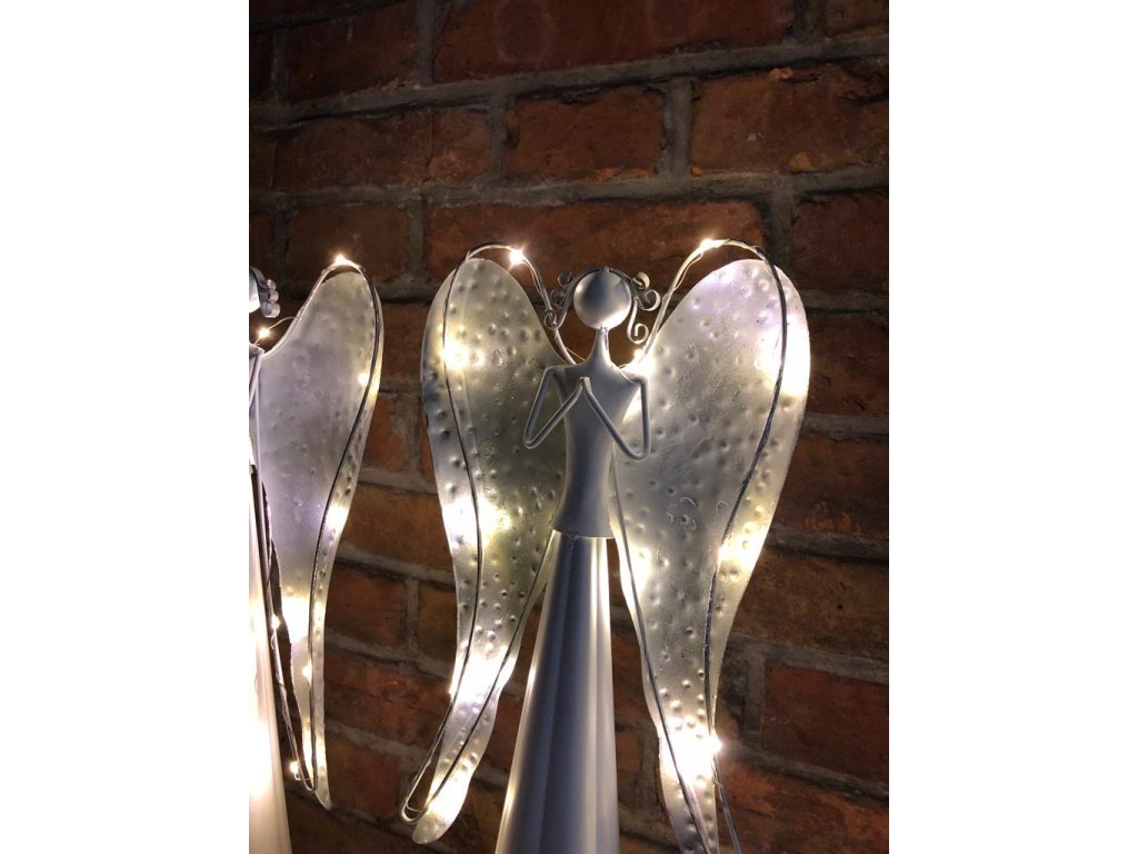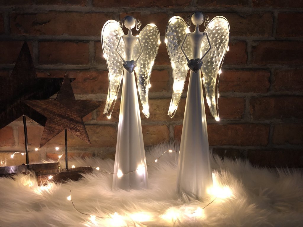 Andělka je vyrobena z kovu, ve spodní části se umísťují baterie. Není vhodné do exteriéru, jedná se o interiérovou dekoraci. Jen nyní a jen do vyprodání posledních kusů nabízíme tyto andělky v akci 1+1!