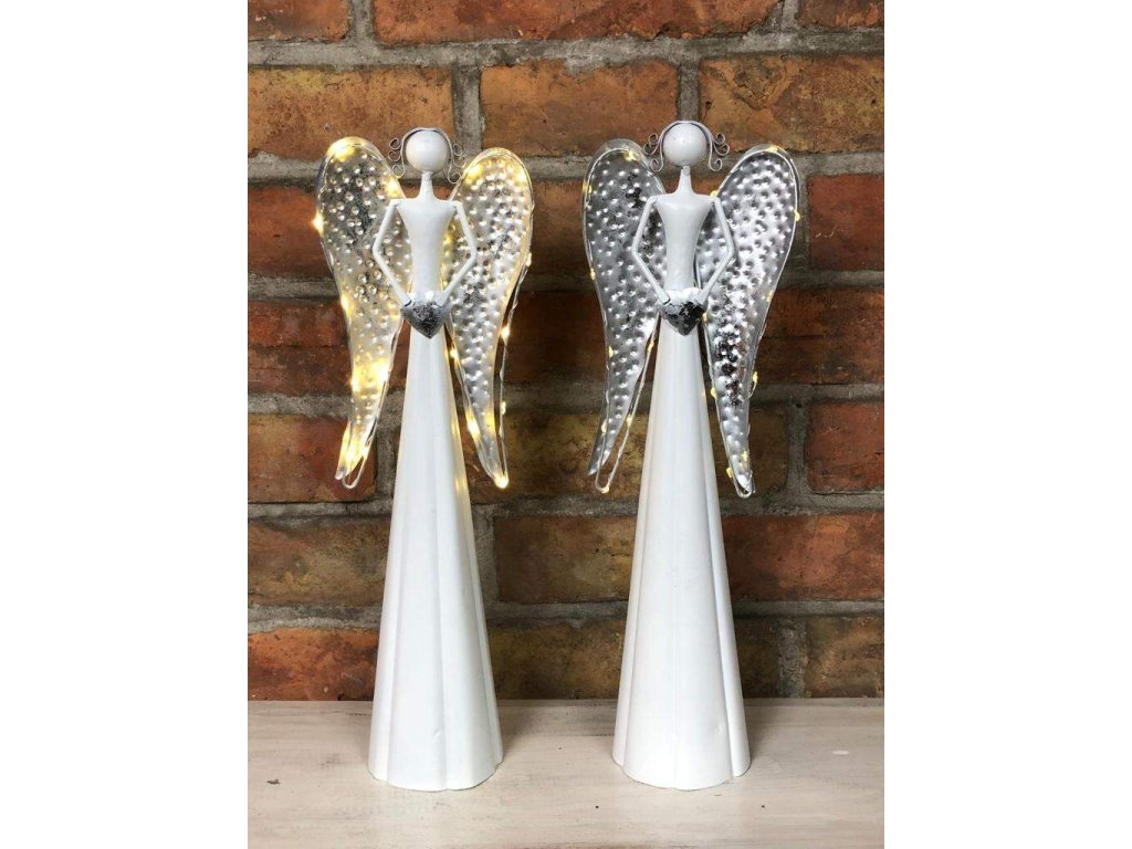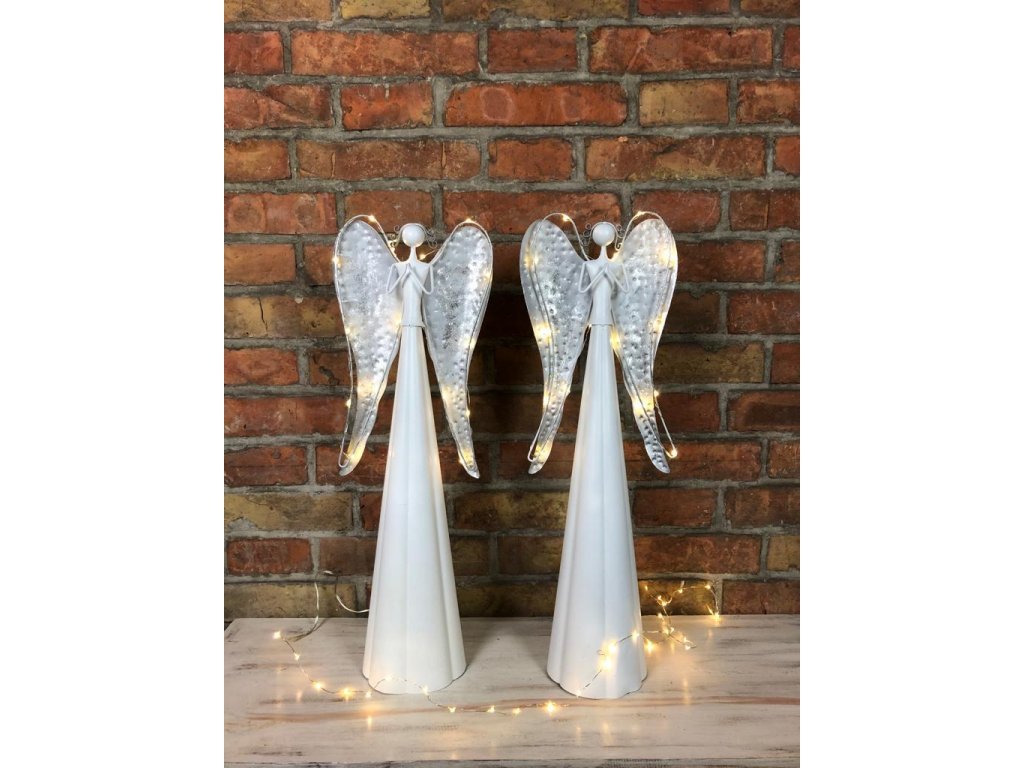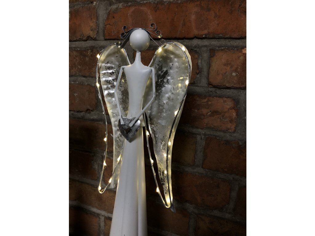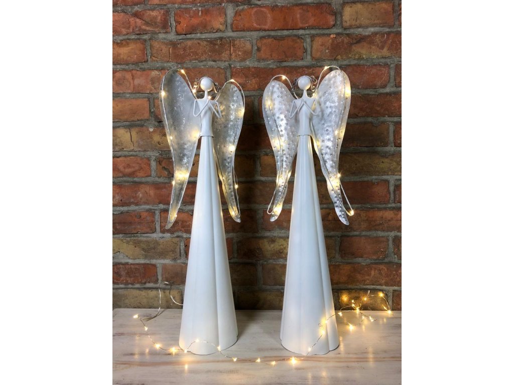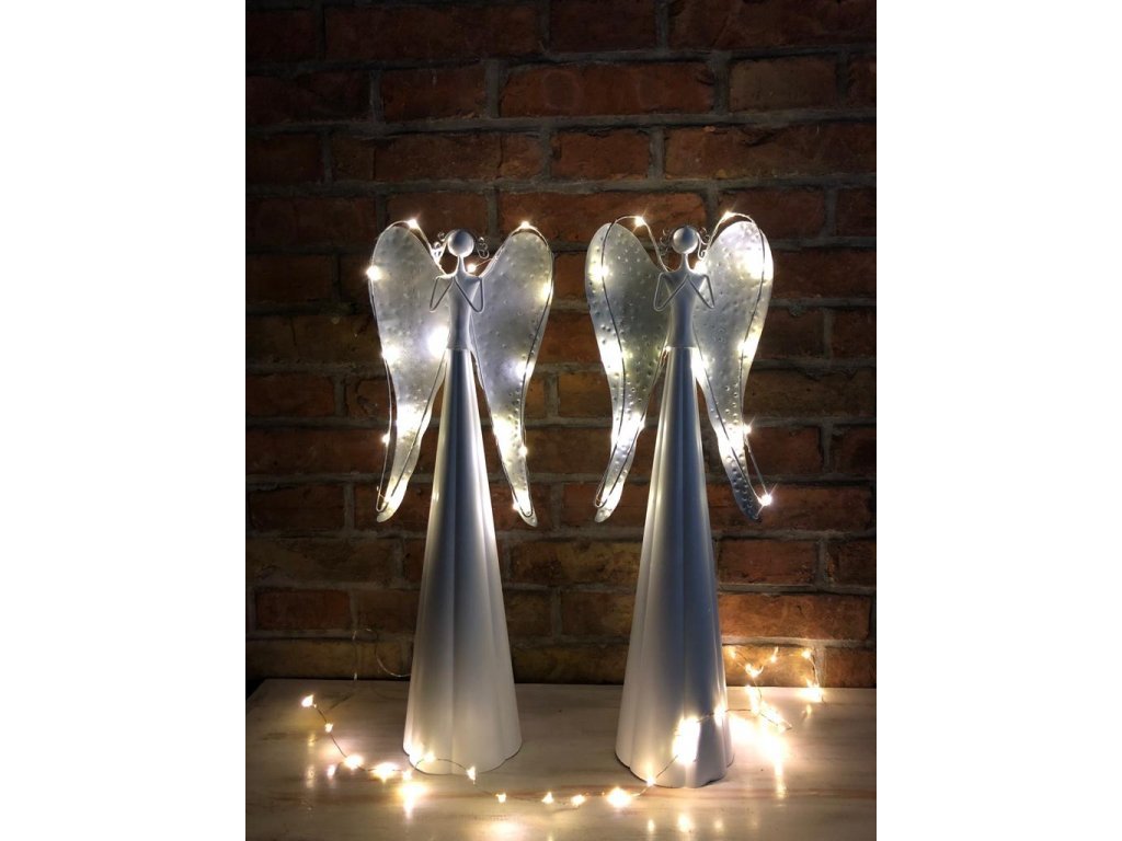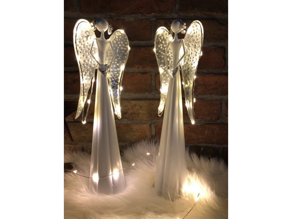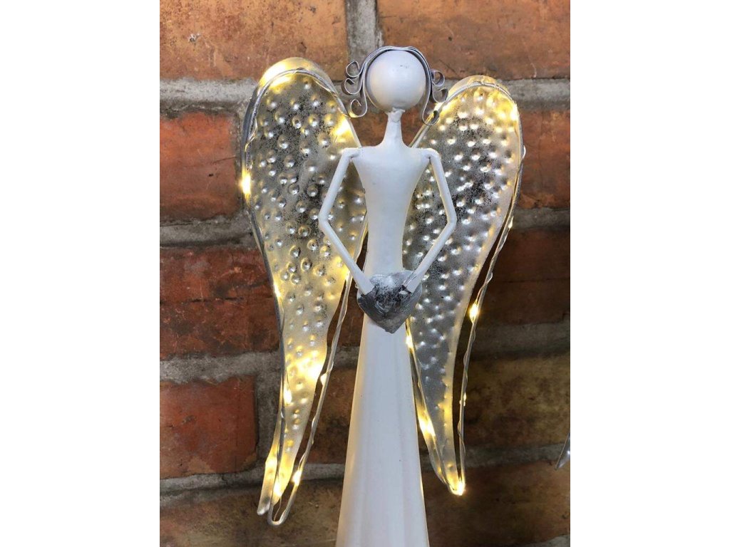 Andělka je vyrobena z kovu, ve spodní části se umísťují baterie. Není vhodné do exteriéru, jedná se o interiérovou dekoraci. Jen nyní a jen do vyprodání posledních kusů nabízíme tyto andělky v akci 1+1!