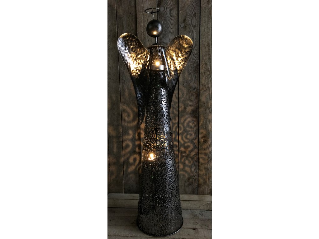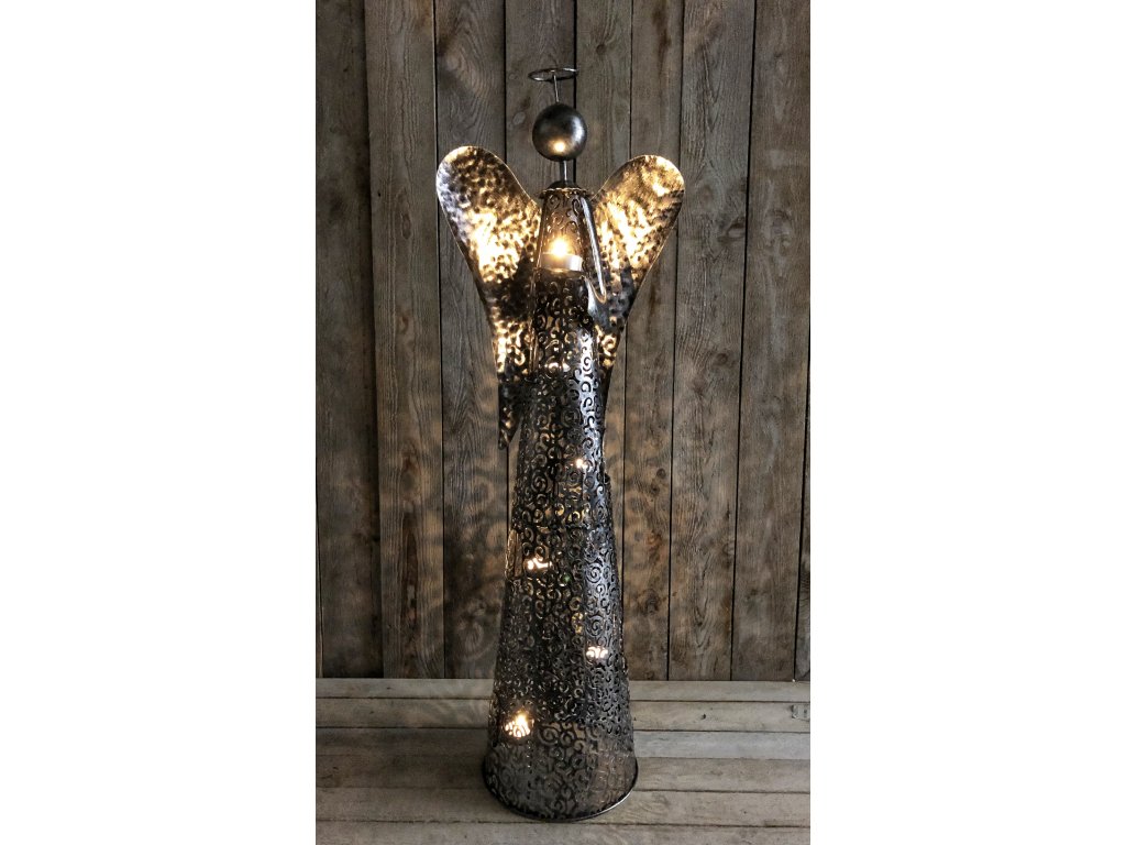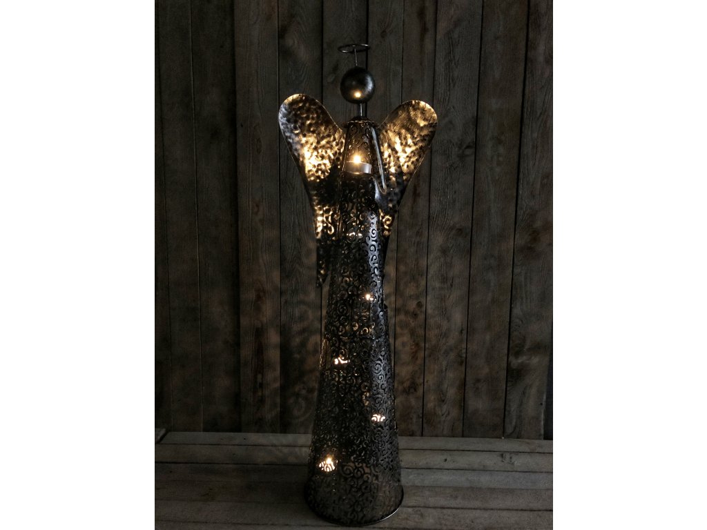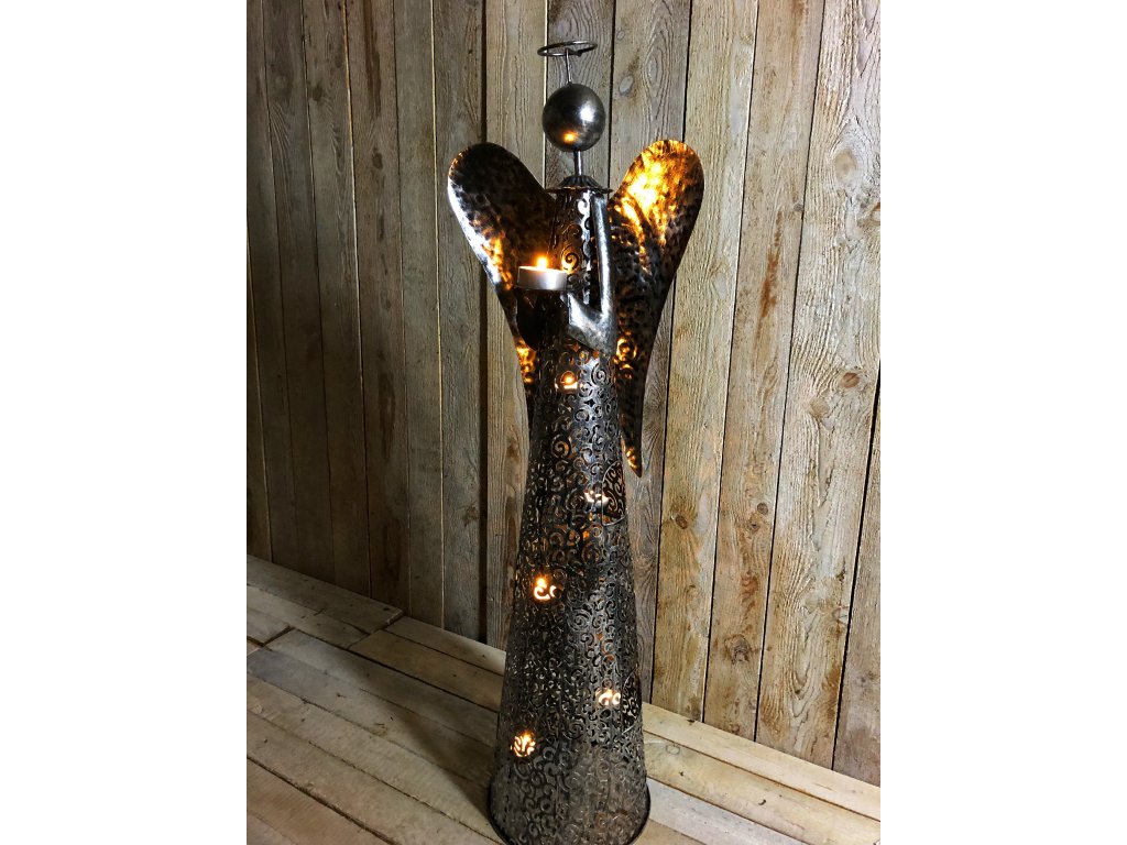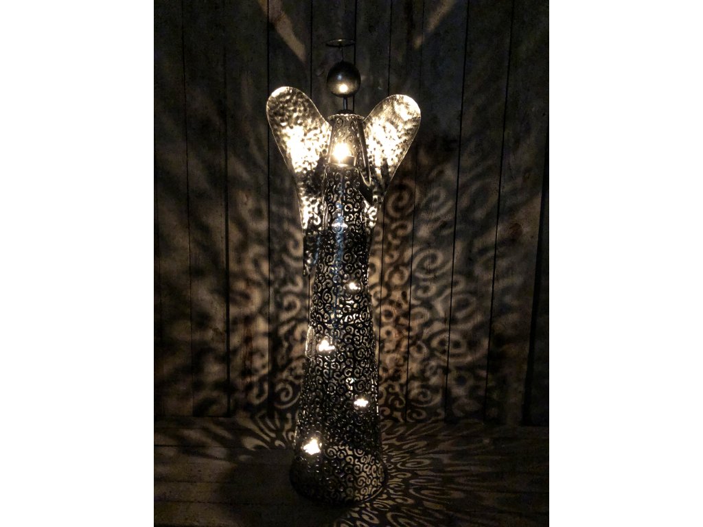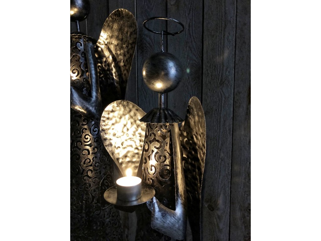 Anděl noci, symbol světla tvojí cesty, aby si vždy viděl kam jít. Anděl je kovová dekorace protkaná děrovaným zdobením po celém obvodu sukénky. V její délce jsou umístěny otvory a uvnitř podstavce na čajové svíčky. Anděl tak při zapálení všech otvorů získá neuvěřitelnou podobu odrážející se ve tmě. Kouzelná dekorace, která uchvátí nejeden pohled. Každý z nás aspoň jednou potřebuje svítit, aby šel tou správnou cestou. Na výběr ze tří velikostí. Nejmenší anděl nemá v sukýnce kalíšky, pouze v ruce.