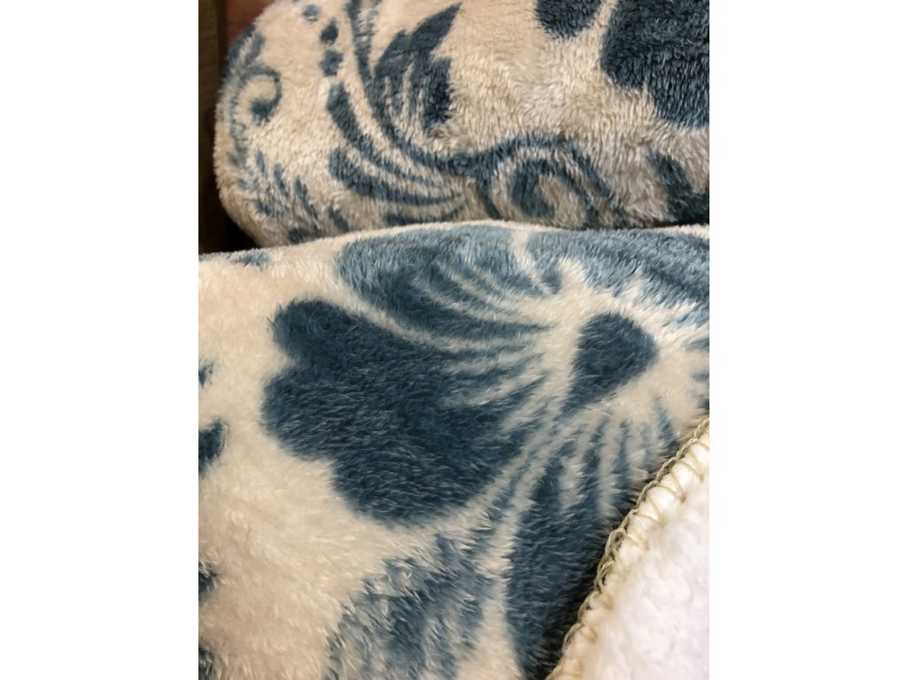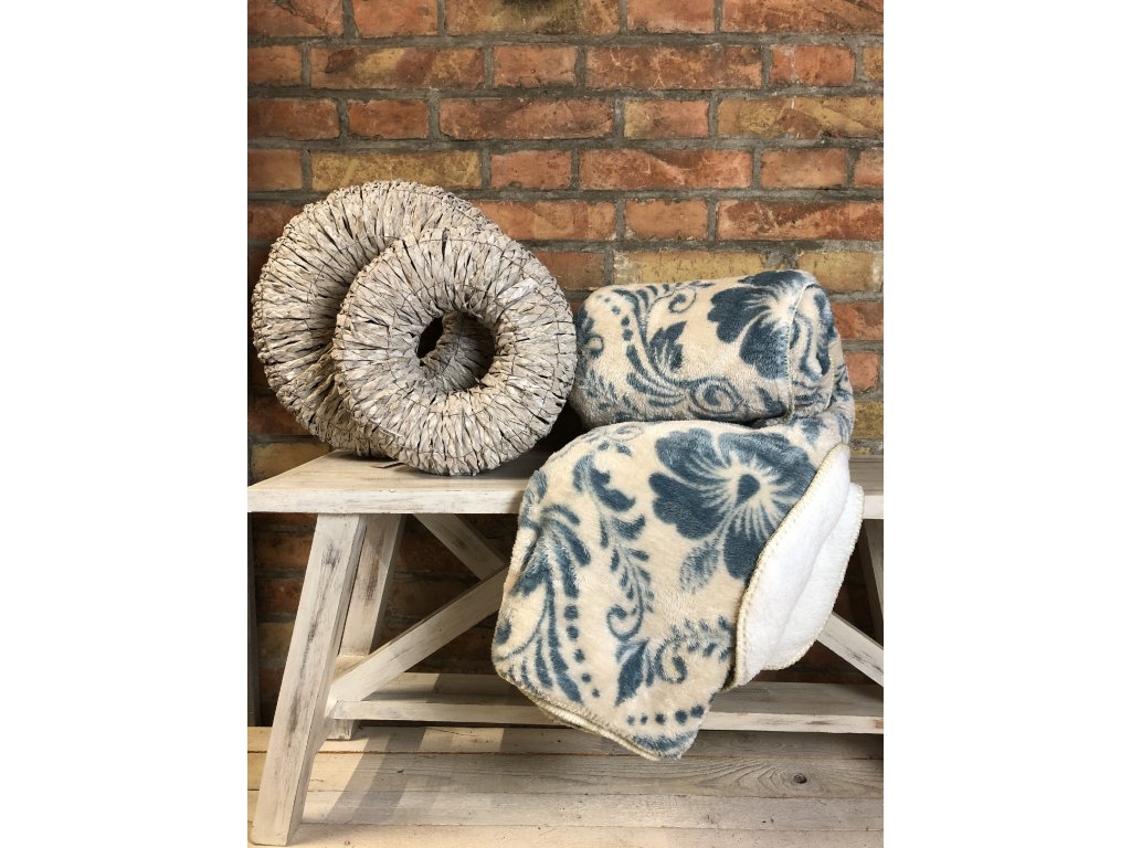 Vzorovaná beránková deka vám dodá pocit pohody, tepla a relaxu. Zachumlejte se do ní u televize nebo na terase při svíčkách a udělejte si chvilku klidu. Má svůj originální vzor modrých, šedých květů, který zvýrazní design vašeho interiéru.