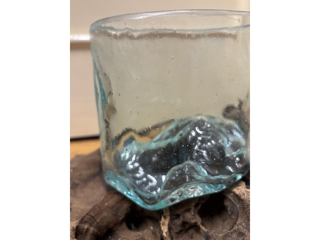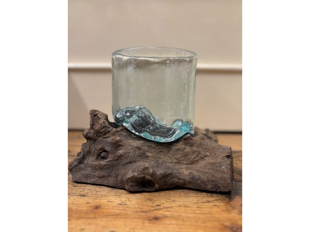 Jak se říká, originál je jen jeden. Tato dekorace to splňuje na 100%. Každý kousek dřeva je jiný, originální, jinak velký, široký. Na každém kusu je ručně foukaná váza tak, aby přesně zapadala mezi kousek dřeva. Sklo je válcovitého tvaru. Můžete do ní vložit květy, kamínky nebo cokoliv jiného, je to na vás. Objednejte si svůj originál.