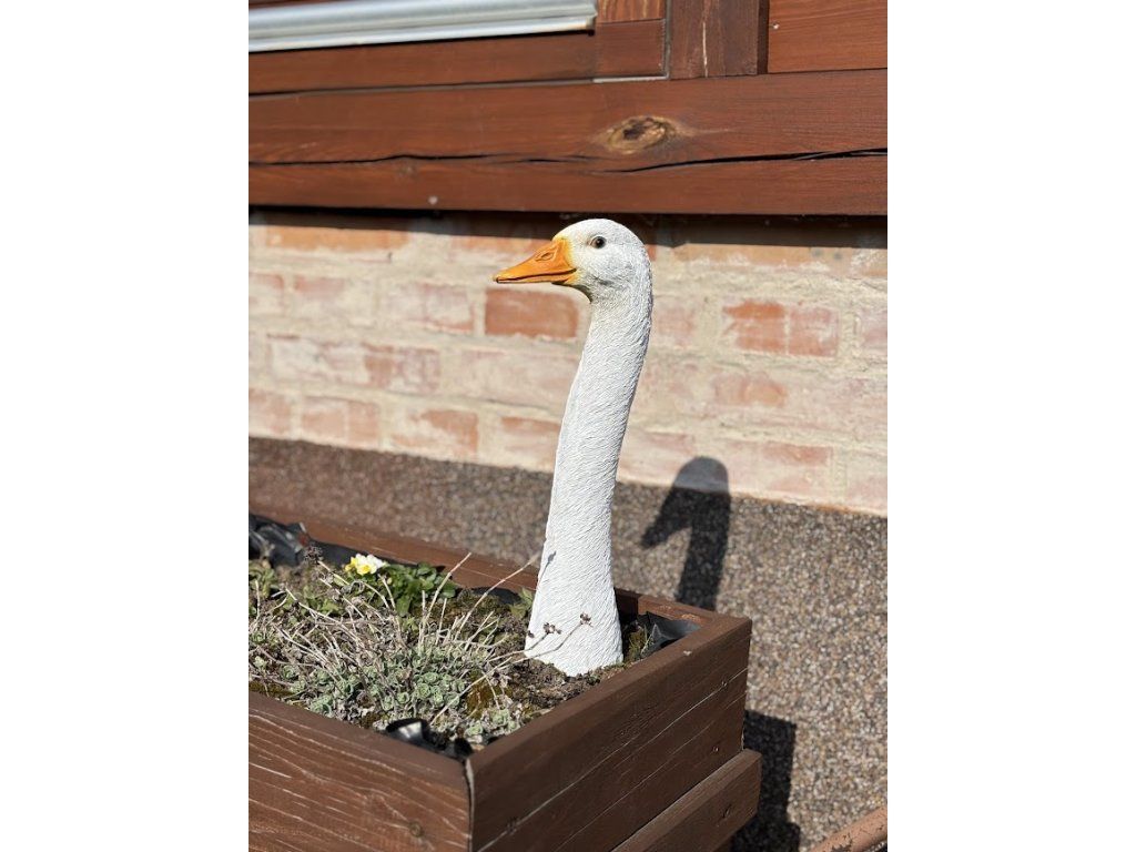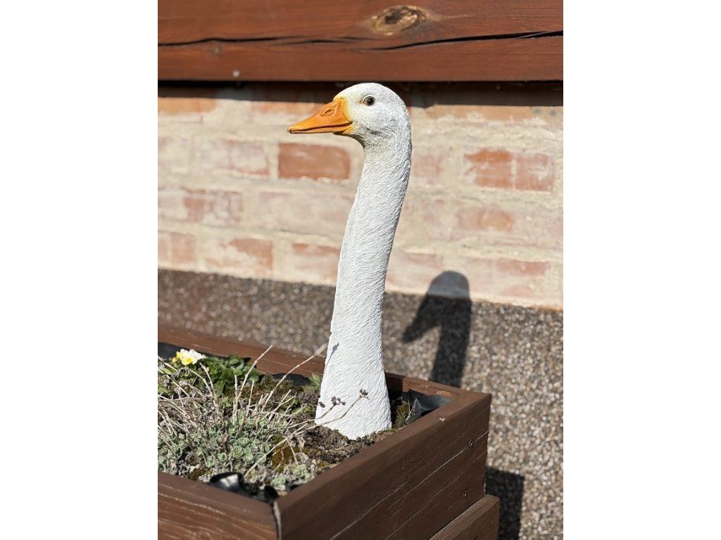 Roztomilá dekorativní husa, která oživí každý květináč, truhlík nebo zahradní zákoutí. Díky realistickému zpracování a jemné struktuře působí velmi přirozeně a stane se milým doplňkem mezi květinami na terase, balkoně i na zahradě.