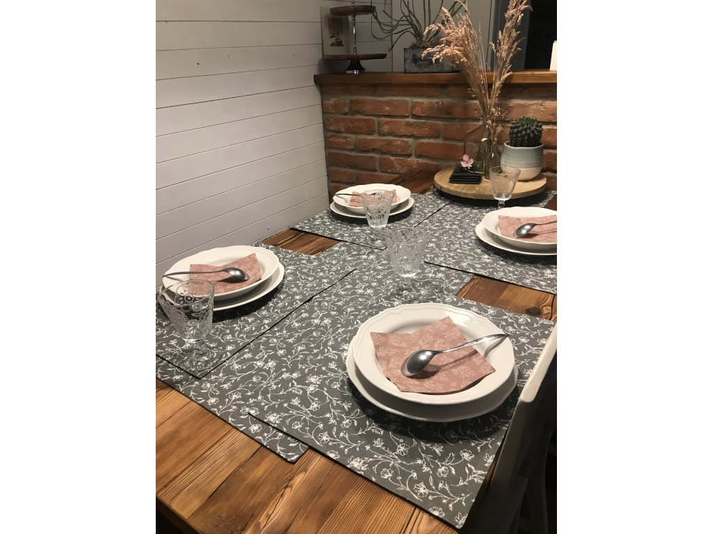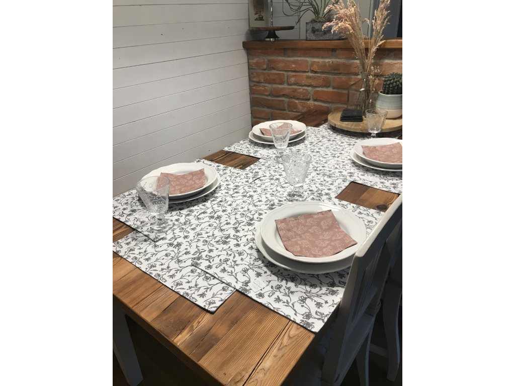 Oživte svůj stůl sadou prostírání a běhounu ve stejném designu. Můžete k tomu pořídit i podsedáky na židle a bude to TOP. Příjemné barvy, které se hodí do každého interiéru. Šedá s bílou nebo bílá s šedou a dekorem kvítků. Pojďte si doma udělat atmosféru květinové louky.