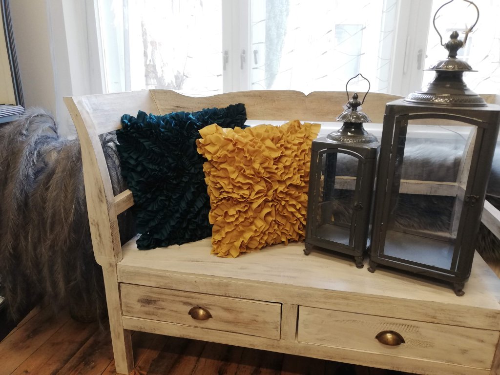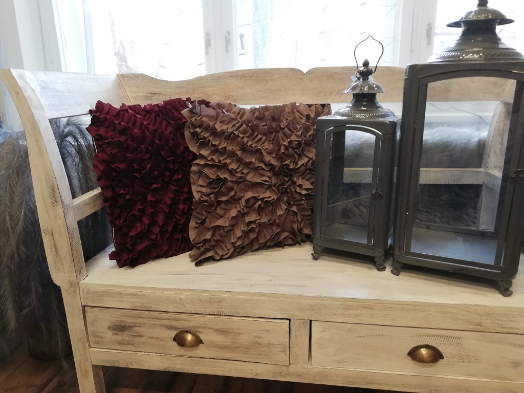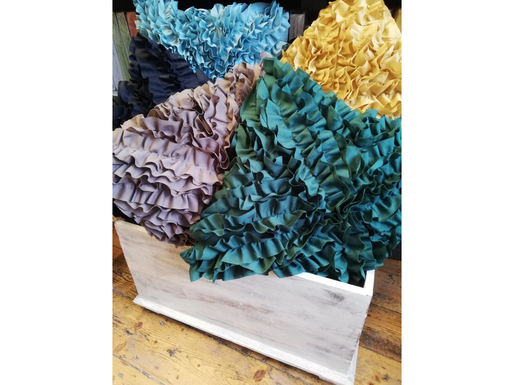 Dekorativní polštář s řasením je originální kousek do stylového obýváku. Bude se krásně vyjímat, ale i na křesle. Výběr máme z několika barev. Polštář je včetně výplně.