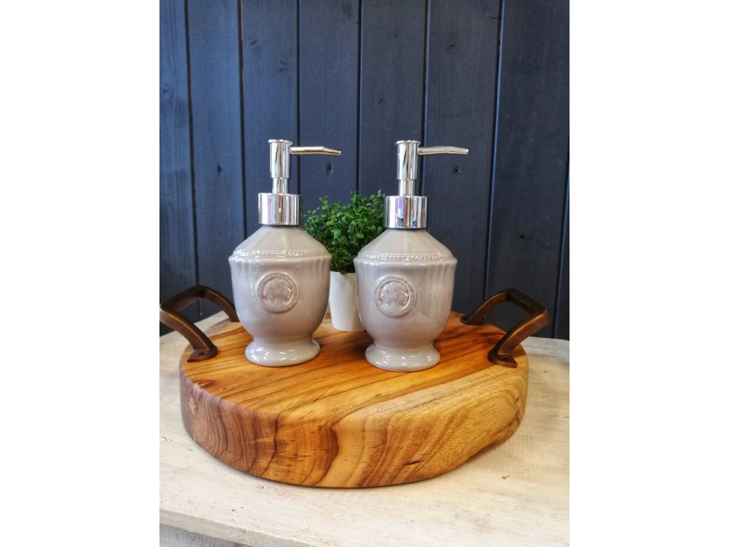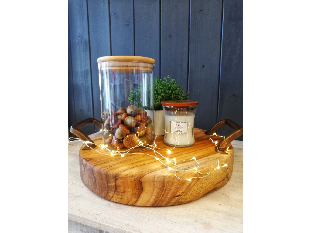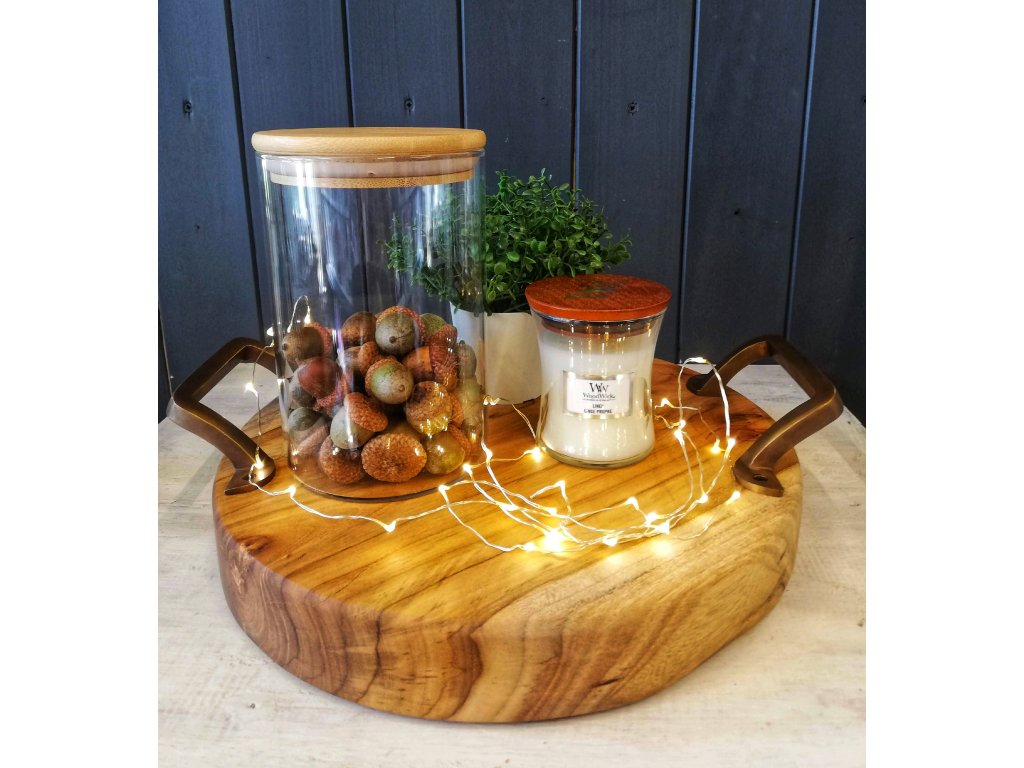 Masivní, kulaté, dekorativní, servírovací prkénko. Nemusíte ho výhradně využít jen v kuchyni. Tato prkénka jsou tak designově krásná, že ho můžete použít i jako dekorační tác. Plocha je dostatečně velká, vysoká masivní opracovaná deska do hladka. Úchyty jsou kovové, barvy zlato hnědé. Každé prkénko je originál díky vzhledu dřeva. na každém kusu je vypálena značka.