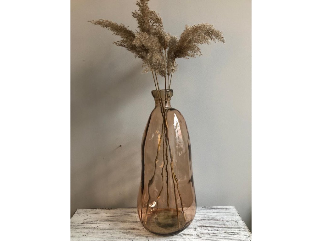 Jejich tvar není tak lehké popsat. Vysoké, úzký otvor, ale tělo mírně zkroucené. Není to vada, je úmysl, aby váza vypadala přesně tak jak vypadá. Designový kousek v hnědé barvě, ručně foukané. Poměrně těžké, nemusíte se bát převrácení. Nabízíme vám dvě velikosti, aby si každý mohl vybrat. Stačí pár větviček či rákos a nadělá to neskutečnou parádu.