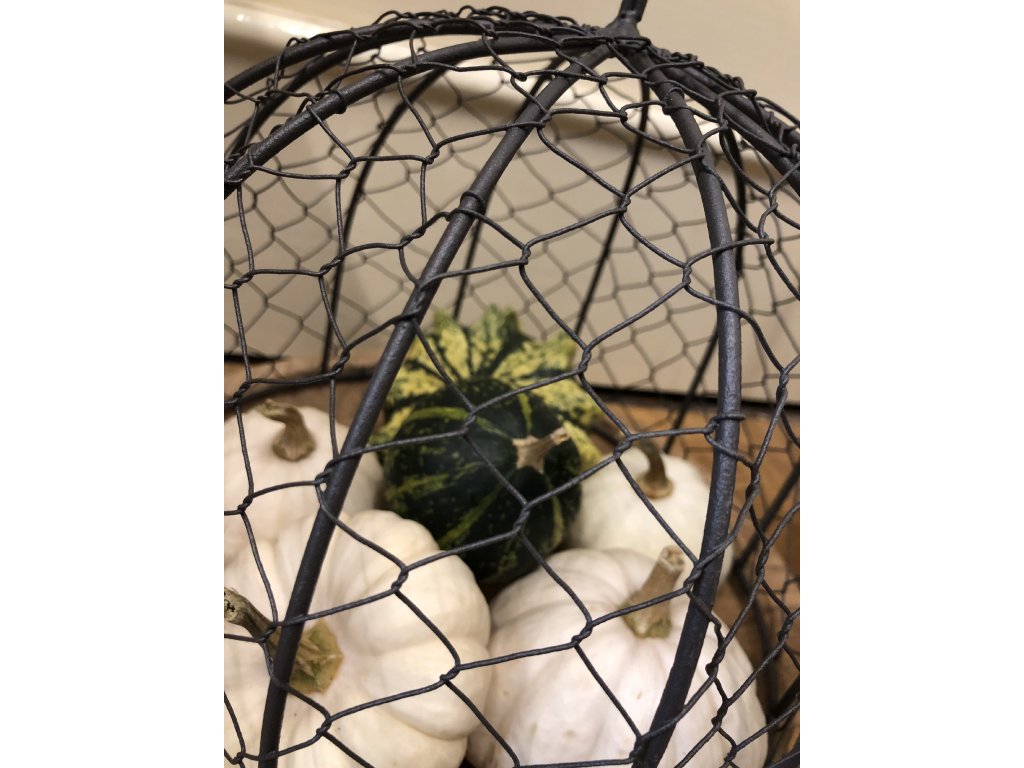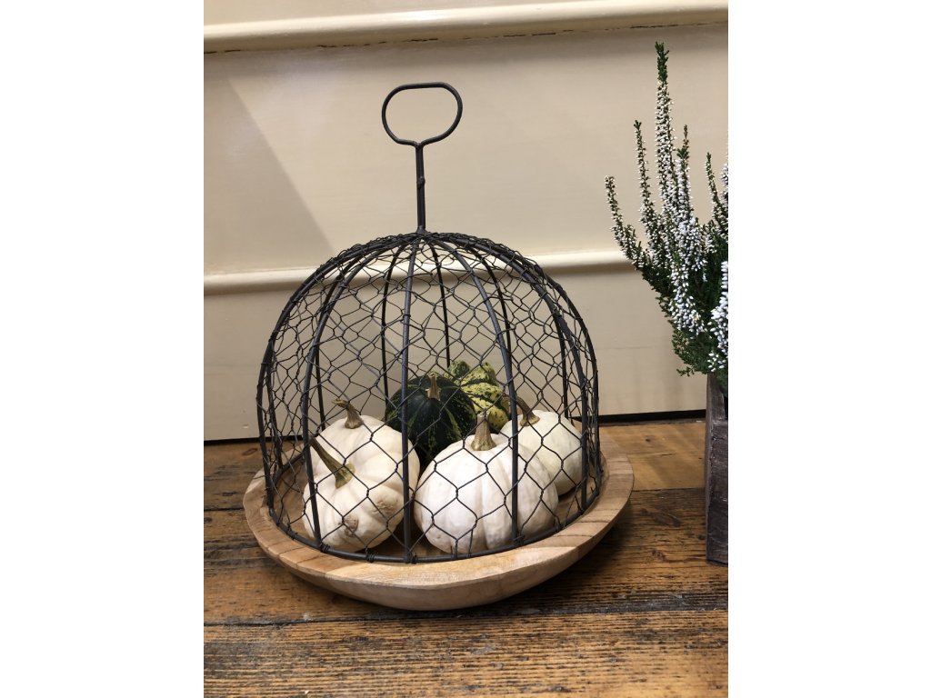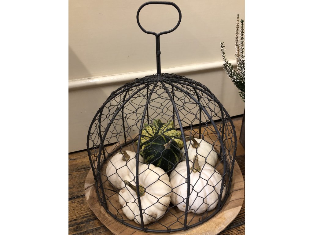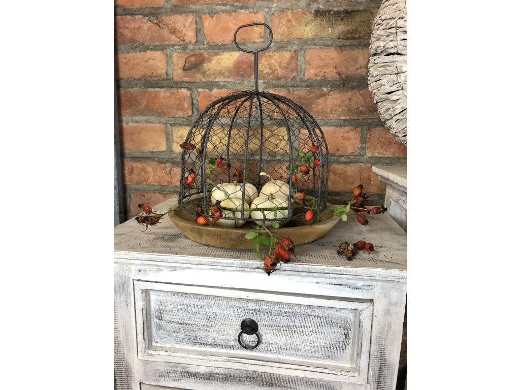 Drátěný dekorační poklop pro další dekorování. Není určen pro zakrytí jídla, má velké otvory, tudíž by se tam hmyz bez problému dostal. Poklop můžete mít jen tak volně položený a v něm třeba jen svíčku nebo ho můžete stejně jako my dekorovat dle ročního období. Fantazie je nekonečná.