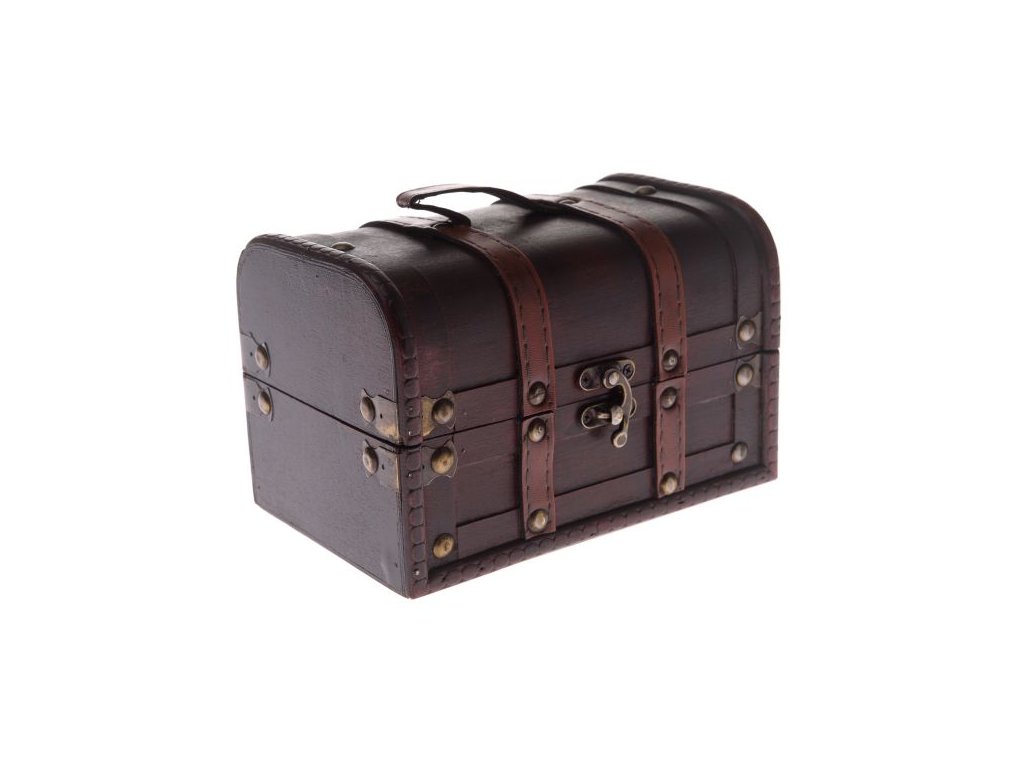 Větší dřevěná truhlička nejen na poklady. Vhodná dekorace pro dárek s překvapením. Holčičky v ní mohou mít své poklady, gumičky a drobnosti. Můžete ji, ale využít i jako svatební dar a dát do ní drobnost či peníze. Využití je hodně. Truhlička má dekorační kožené pásečky. Vypadá tak trochu jako kufřík.