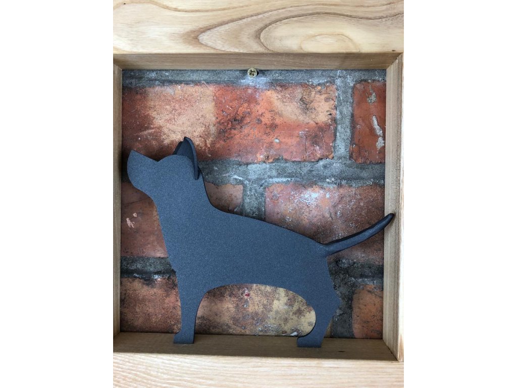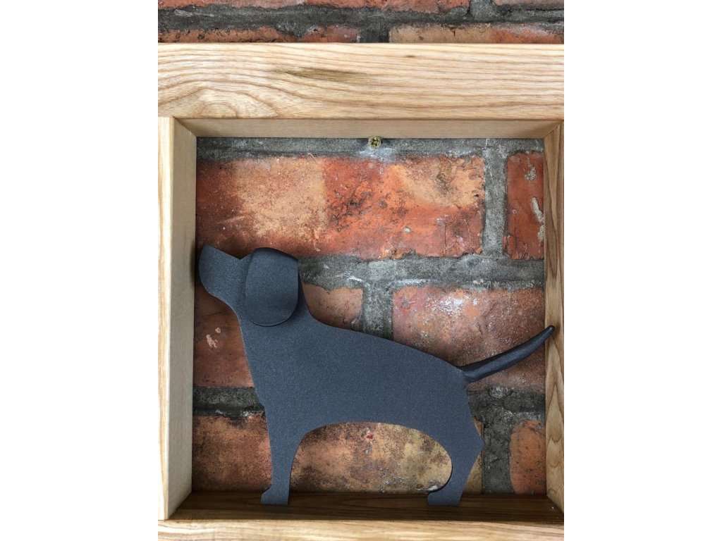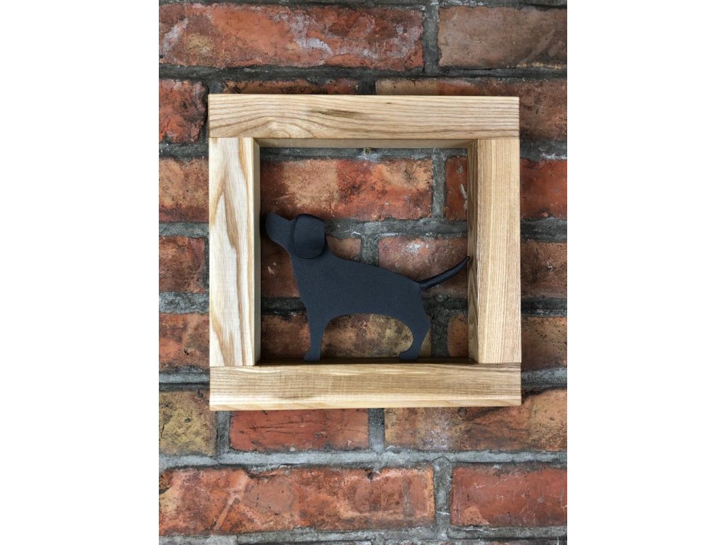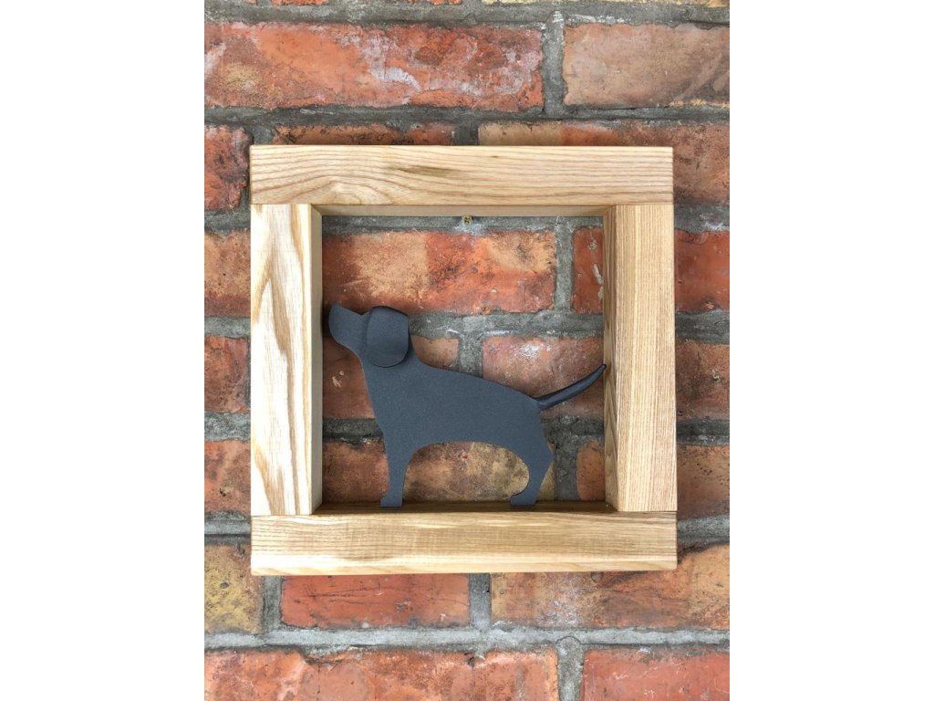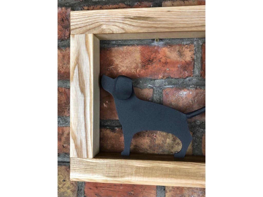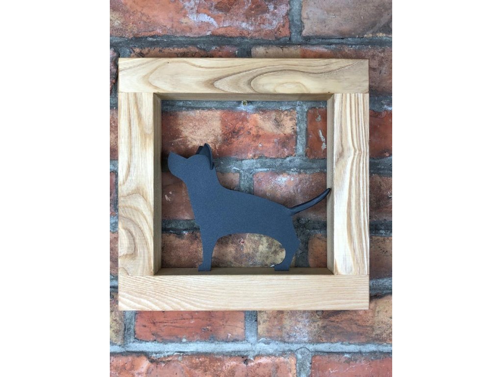 Ručně dělaná dekorace kovaného pejska v dřevěném rámečku bude hezkým, originálním doplňkem vašeho interiéru. Dřevo je hladce opracované, natřené matným nátěrem. Kovaný pejsek je přichycen šroubky a z druhé strany jsou kulaté otvory pro uchycení šroubků. Na výběr máte ze dvou pejsků. Sklopená ouška, postavená ouška.