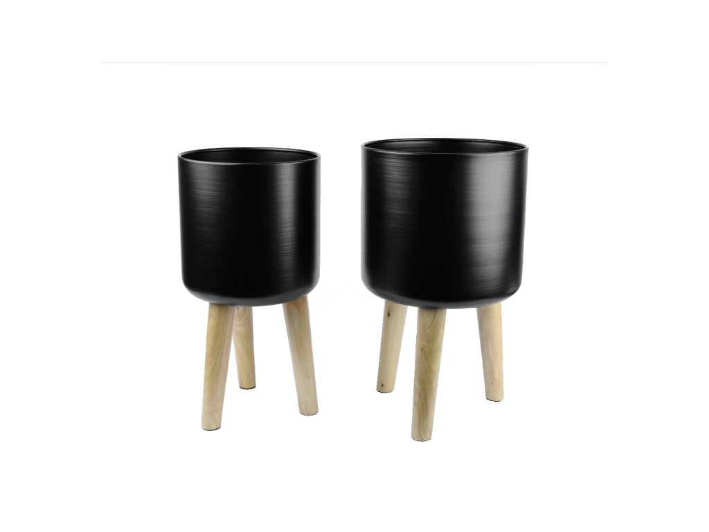 Moderní kovové černé květináče do interiéru budou nedílnou součástí vašich květin. Hodí se do nich jak květiny rostoucí do výšky tak i převislé. Díky vysokým dřevěným nožičkám budou kytky krásně přepadat. Květináče jsou ve dvou velikostech a tak je k sobě můžete kombinovat jak potřebujete. Květináče lze umístit do jakékoliv místnosti. Doporučujeme květiny do nich vsazovat včetně vnitřního květináče ne napřímo. Není tam žádný odtok přebytečné vody. Květináče nejsou nijak těžké, ale i přesto stabilní.