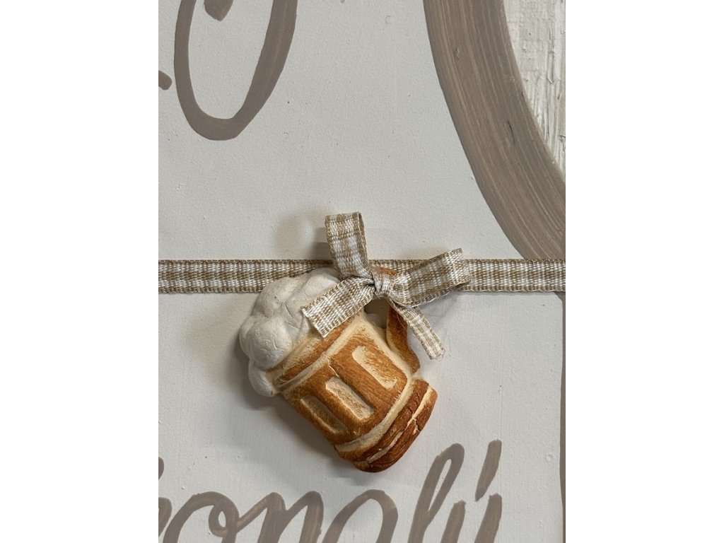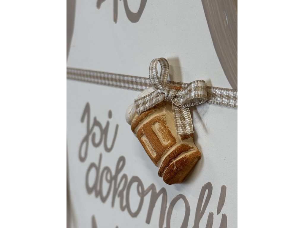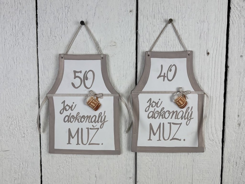 Vtipná dekorace na zeď například jako dárek k narozeninám. Malá pozornost co potěší a vykouzlí úsměv na tváři. Keramická dekorace na zeď ve tvaru zástěry v cappuccinovém provedení. Na zástěrce je nápis " Jsi dokonalý MUŽ" s číslem věku a plastickým provedením plného půllitru v pase. Celá dekorace je doplněná dekoračními šňůrkami jakoby na zavázání.