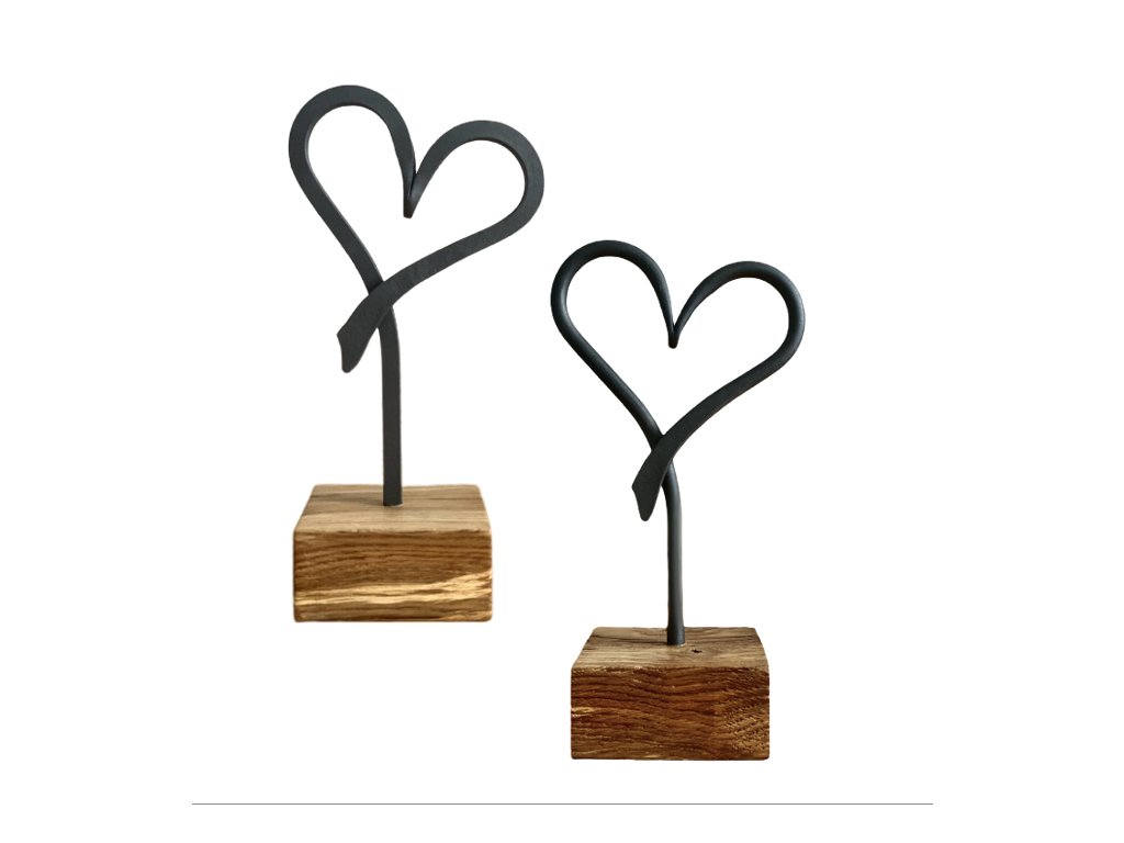 Další z kousků našeho uměleckého kováře, který u nás v nabídce nesmí chybět. Krásná dekorace nejen pro vás, ale i jako dárek pro toho koho máte rádi nebo jako svatební dar. Černý kov stočený do krásného tvaru srdce umístěné na opracovaném dřevěném podstavci. Dřevo je jasan, který je ošetřen lněným olejem.