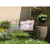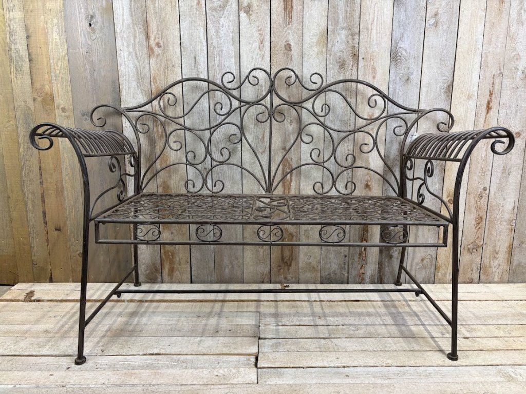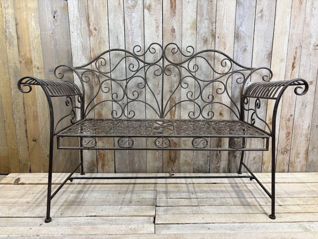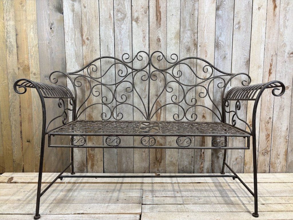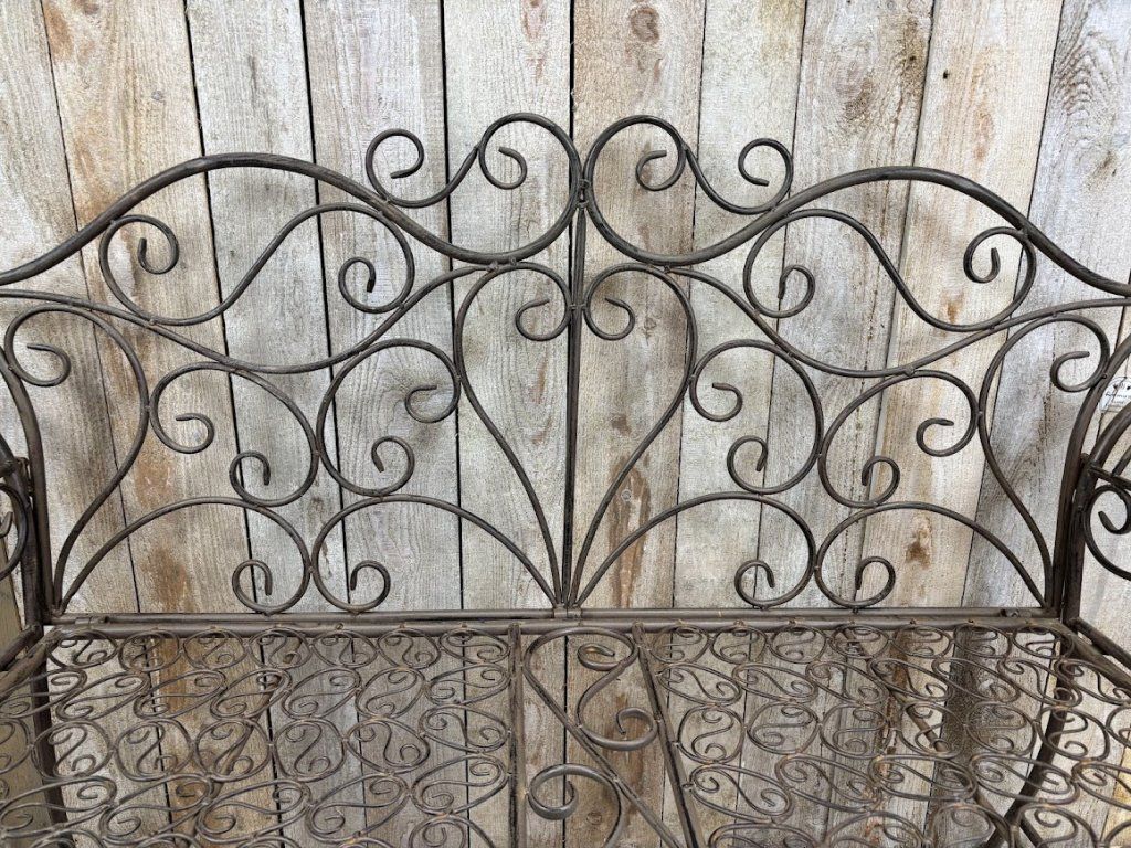 Zahradní lavice je nedílnou součástí snad každé zahrádky. Můžete jí mít, ale i před domem či na terase. Lavice je celokovová, barvy hnědé, neobyčejně tvarovaná s různými záhyby a zatočenými tvary. K této lavici se krásně hodí i námi nabízené květinové stolečky. Nemusíte na něj, ale výhradně dávat květinu, může to být i šálek kávy či čaje.