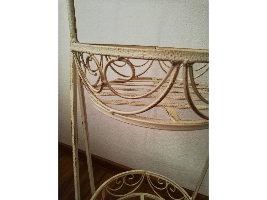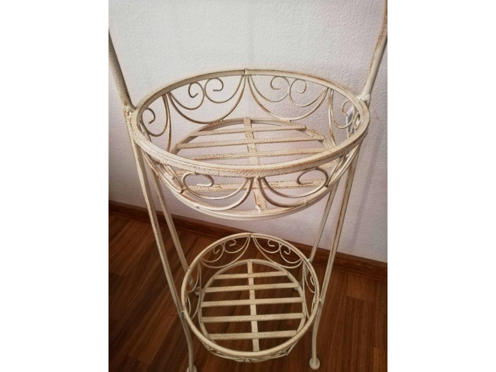 Máte doma spousty květin a chcete je mít někde u sebe? Krásný kovový patrový stojan bude přesně takovým doplňkem, který sháníte. Můžete do něj dát květiny, ale také i nějaké další drobnosti. Uspořádání necháme na vás. Je to kvalitní kov natřen na krémovou barvu. Košíky jsou dekorované a stojí na 4 nožičkách.