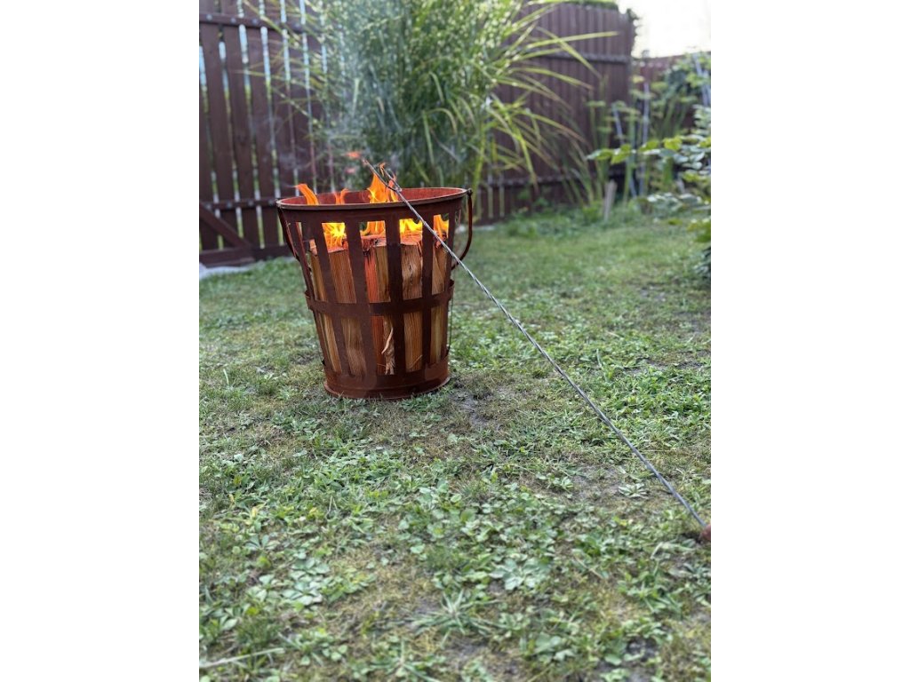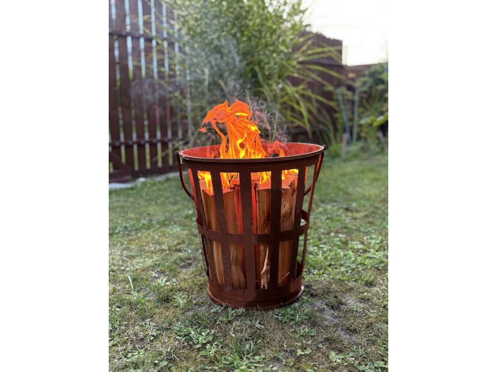 Kovový rezavý koš s praktickým uchem je víceúčelovým doplňkem pro vaši zahradu i terasu. Lze jej využít jako přenosné ohniště pro večerní posezení u ohně, ale také jako originální květináč pro vaše rostliny. Díky pevnému madlu je snadné jej přenášet a podle potřeby měnit jeho umístění.