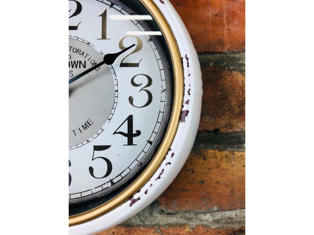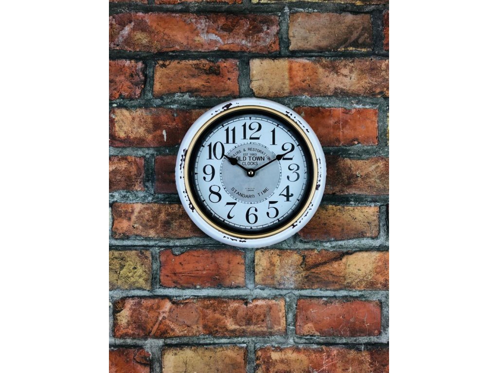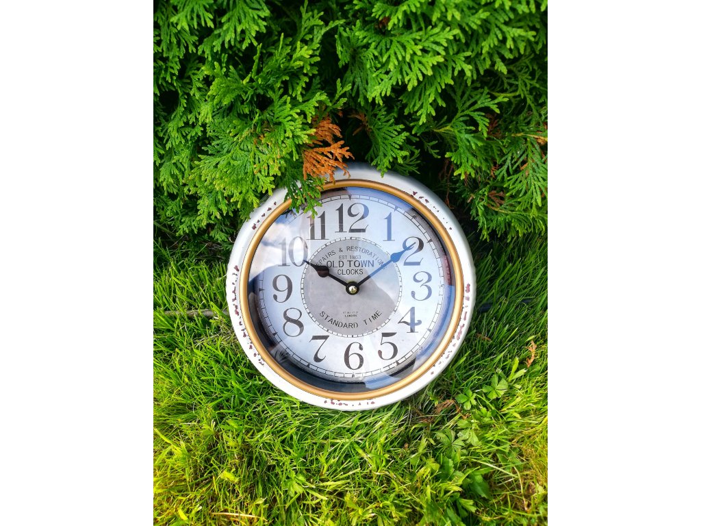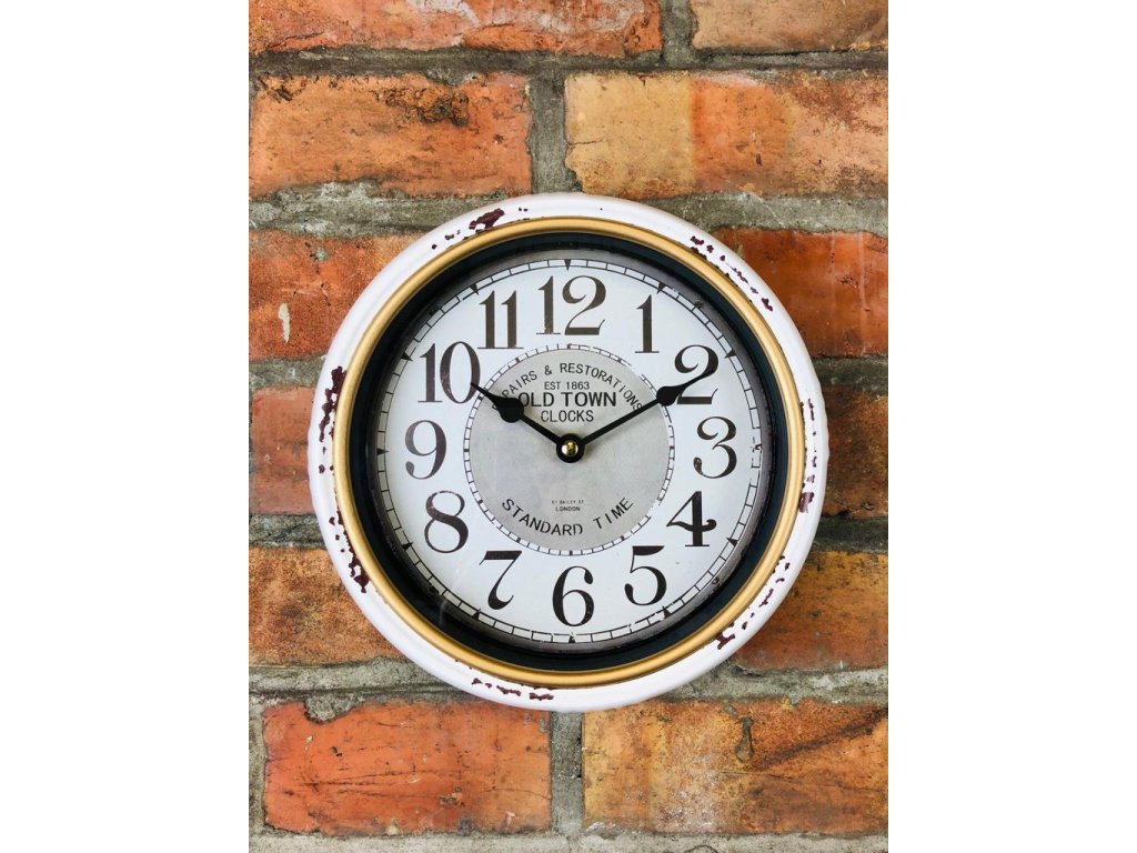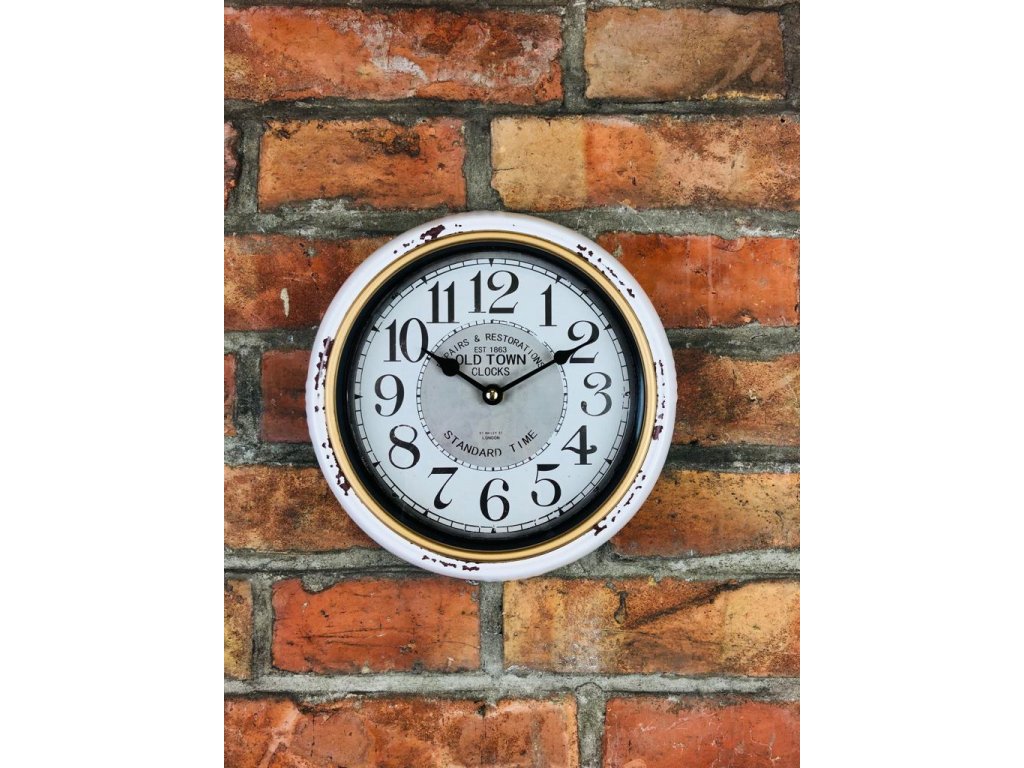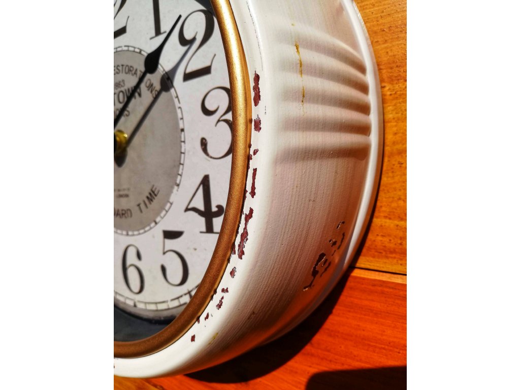 Retro je pořád IN, možná víc než dřív. Proto naši nabídku neustále rozšiřujeme, aby jsme vám mohli nabídnout co je právě aktuální a můžete si tím ozdobit svůj interiér, ale i exteriér. Tyto hodiny jsou krémové barvy, která je místy odřená, aby to nebyla nuda. Rám je ze zlaté patiny, ten tomu dodává šmrnc. Vnitřek je s potiskem, aby to bylo víc reálné. Napájení je na 1xAA baterii.