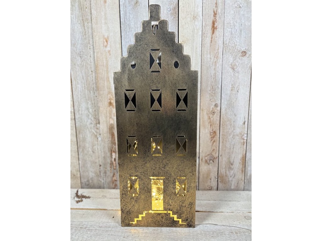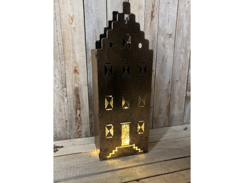 Originální kovová lucerna ve tvaru stylového městského domku vytvoří útulnou atmosféru v každém interiéru. Ozdobná okna i schůdky krásně vyniknou, když do lucerny vložíte světýlka nebo svíčku. Skvěle zapadne do vánoční i celoroční dekorace. Lucerna přijde ve složeném tvaru, ale není třeba vrtačky, stačí jen rozložit a upevnit dno.