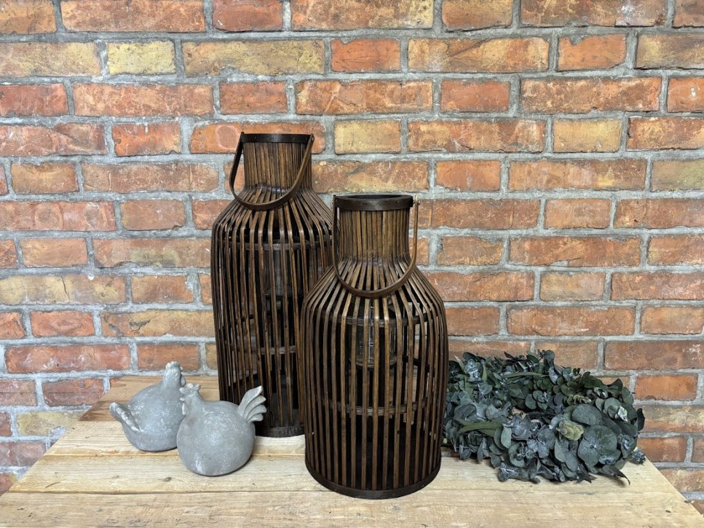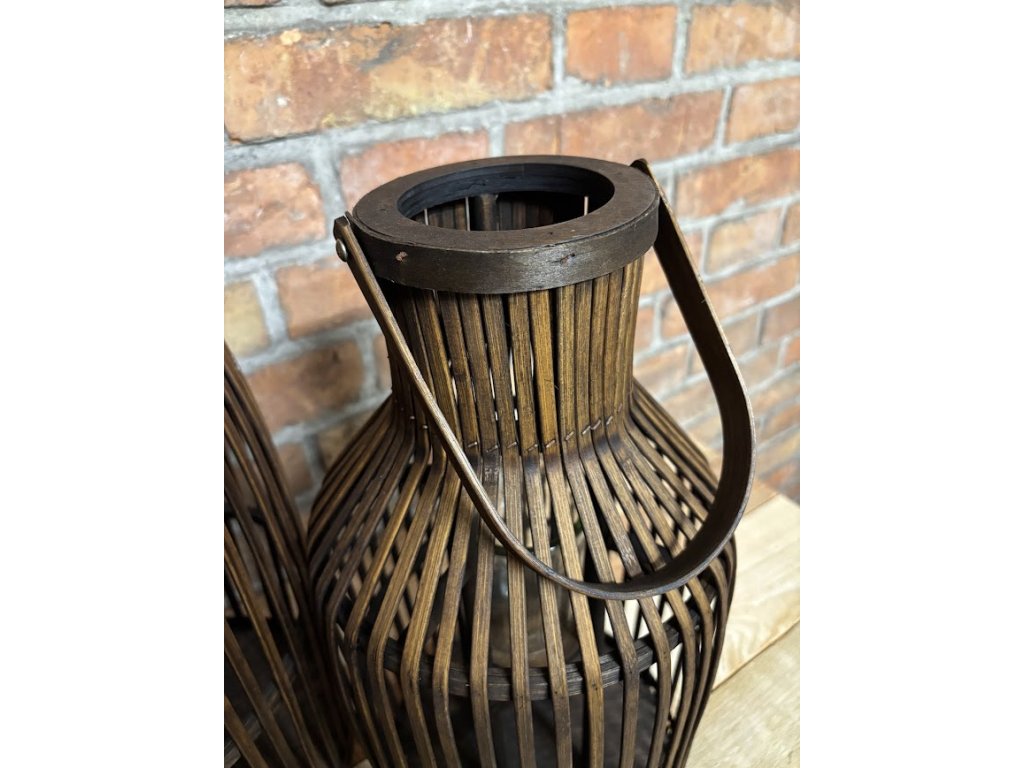 Vytvořte si doma útulnou atmosféru s těmito originálními lucernami v přírodním stylu. Kombinace dřevěných lamel, skleněné vložky na svíčku a držadla na možné zavěšení působí hřejivě a nadčasově zároveň. Lucerny krásně vyniknou jak v interiéru, tak i na kryté terase či balkoně. Po zapálení svíčky vytváří jemné světlo, které prostupuje mezi lamelami a dodává prostoru jedinečné kouzlo. Díky výrazné tmavě hnědé barvě budou dominantou Vašeho domova.