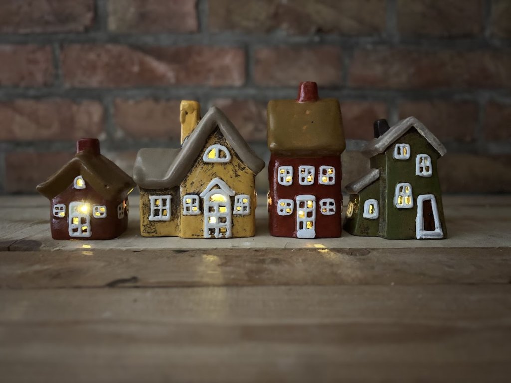 Originální keramické domečky s ručně malovanými detaily, které se po rozsvícení krásně prosvítí a navodí útulnou atmosféru.
