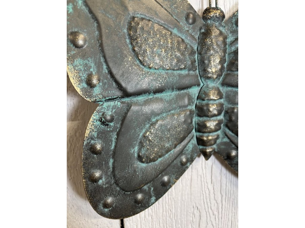Motýl jako symbol jara a léta je krásnou dekorací nejen domů, ale i na zahradu. Díky své modro zlaté barvě vynikne na každém místě a na slunci bude házet jeden odlesk za druhým. Navodí tu správnou jarní atmosféru. Můžete jej vystavit samostatně nebo v páru v obou velikostech. Vždy budou zajímavým kouskem ve vaší domácnosti. K přidělání je na zadní straně jeden úchyt. Po zavěšení má dekorace plastický efekt.