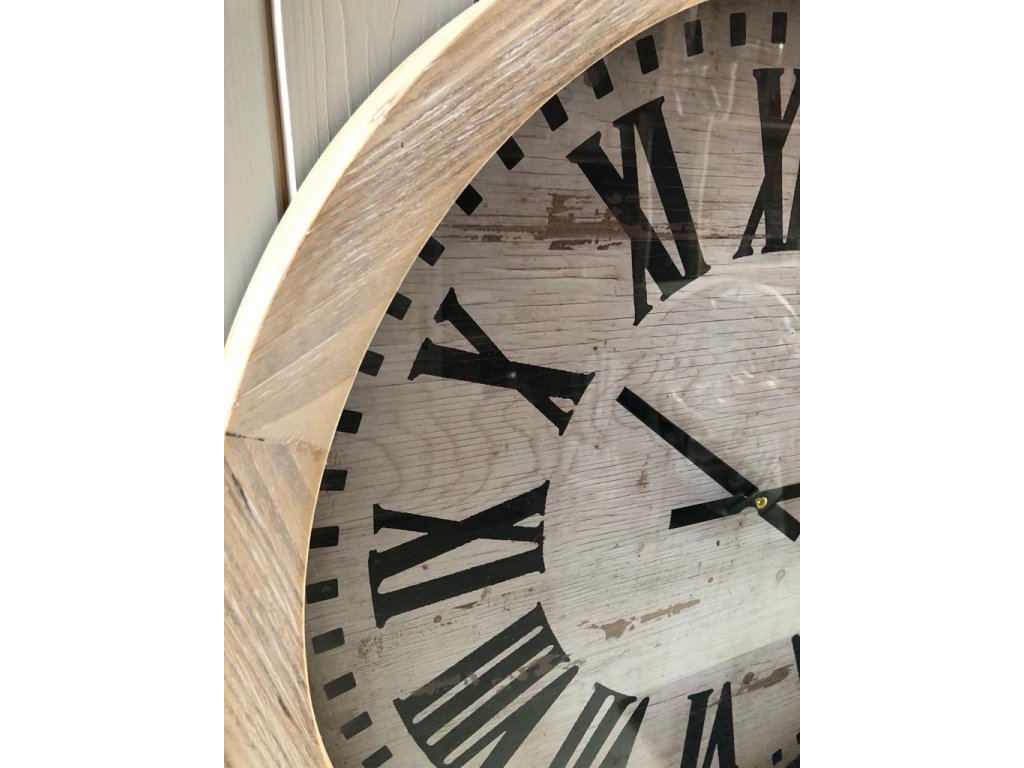 Jedním slovem ohromující. Nejen velikost, ale celkový vzhled těchto hodin. Na jednu stranu jednoduché, ale zároveň stylové a moderní. Přírodní dřevo doplněno o černé kovové doplňky s římskými číslicemi. Háček na zavěšení z druhé strany. Díky velikosti se stanou dominantou dané místnosti.