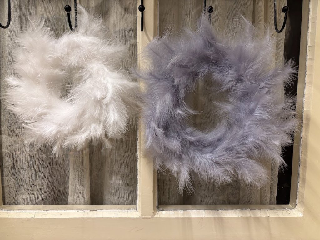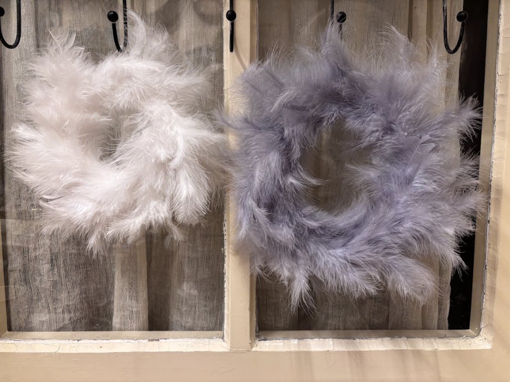 Dekorační věnec z bílého a vínově červeného peří ozdobí domov nejen v období vánoc. Heboučké peří je husté, věnec se dá zavěsit, ale i opřít. Věneček lze umístit na dveře, poličku, zavěsit do okna.