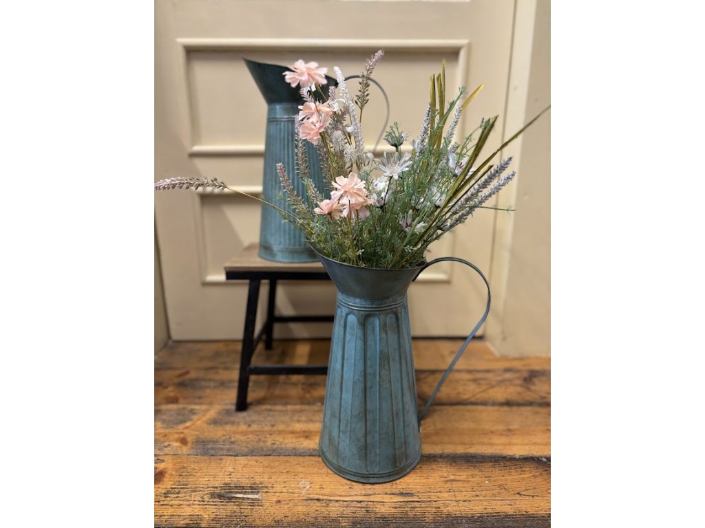 Džbán, tak trochu retro co se vrací zpět. Vázy sice stále frčí, ale na zahrady a chalupy se nehodí. Tento pozinkovaný vysoký džbán s proužky je vhodný i do moderního interiéru, ale také do pergoly, na terasu či před vchodové dveře. Vlastně je to čistě na vás kam ho umístíte. Můžete v něm mít i živé květiny. Džbán je plně funkční.