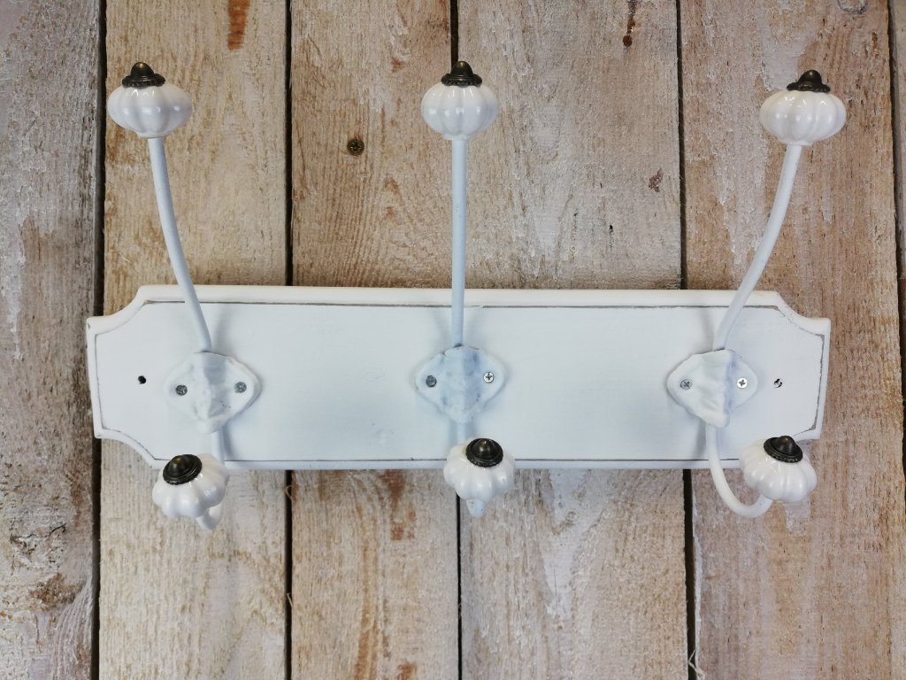 Máte svůj styl, líbí se vám neobyčejné věci? Ať už máte větší nebo menší předsíň, máme řešení. Věšák je ve dvou rozměrech, tak si vybere jistě každý. Je ručně dělaný, natřen na bílo, má krásné ozdobné háčky. Můžete vybírat ze 3 nebo 6 háčky. Vaše chodba tím dostane ten pravý šmrnc.