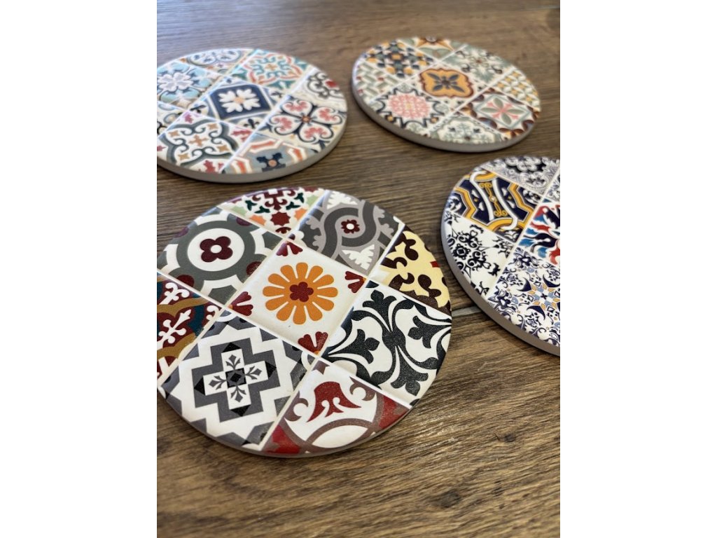 Mandala je velmi oblíbený vzor už jen pro svoji originalitu. každá mandala je jiná, jinak barevná, jinak vzorovaná a díky ní lze i krásně zbavit stresu například při vymalovávání. Naučí vás soustředěnosti a zaměříte svoji hlavu na dané barvy jak je lze kombinovat. Tyto podtácky jsou dělané tak, že máte 4 v sadě a každý je jiný. Jsou krásně barevné, jedná se o kvalitní keramiku a spodek je opatřen korkem, aby se nic nepoškrábalo.