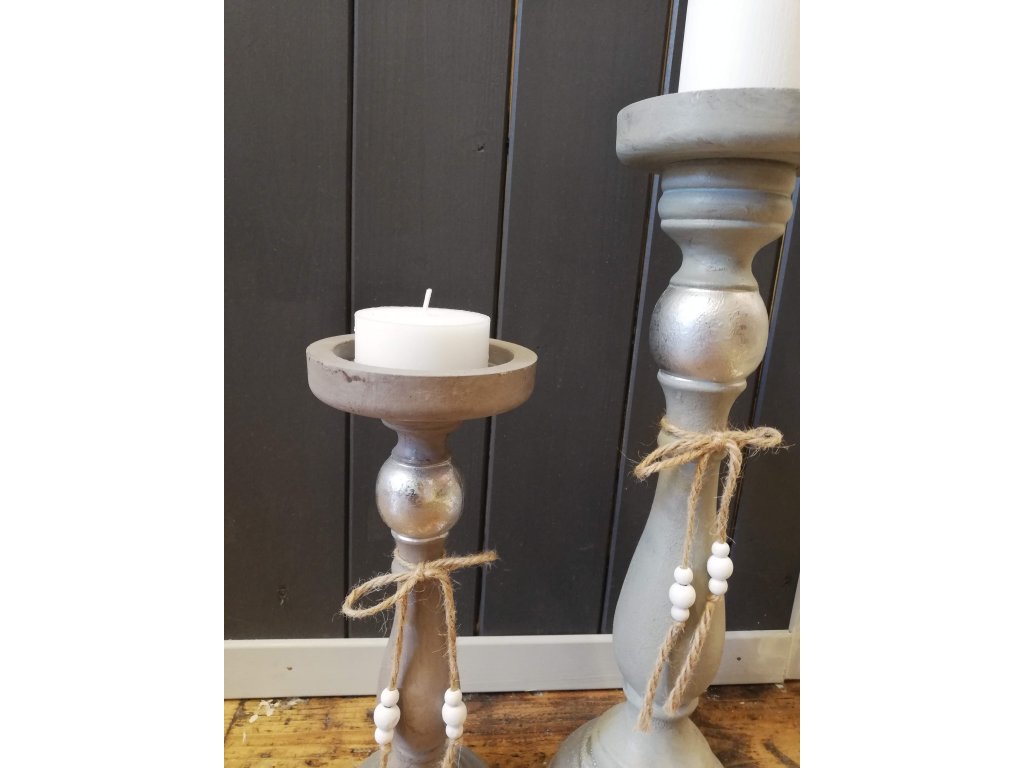 Máte rádi tak trochu klasické věci? Nejste na ty moderní svícny a svíčky? Máme tu krásné svícny, zdobené provázkem s korálky. Barvou šedo stříbrnou, hodící se do všech interiérů. Můžete je mít umístěné jak na komodě tak jídelním stolu. Při romantické večeři je zapálíte a budete si přidat jako v romantickém filmu.