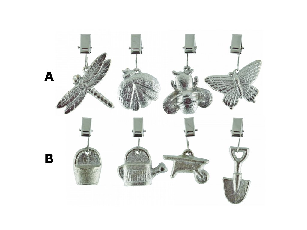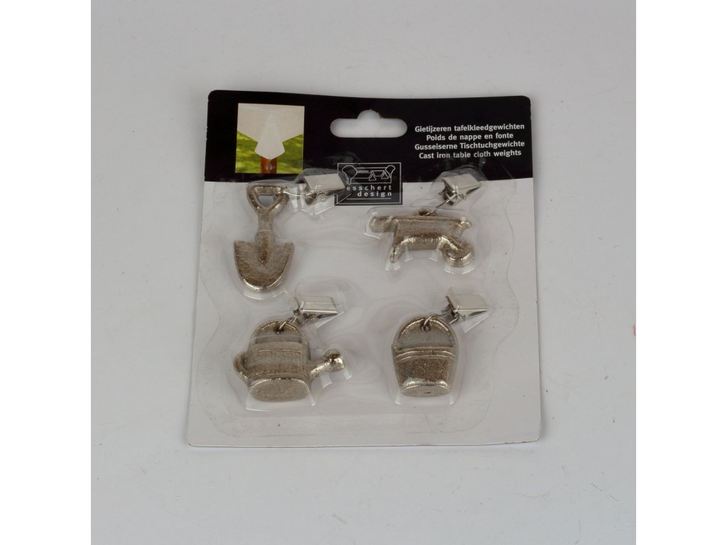 Jsou dostatečně těžké, aby ubrus udržely, ale zároveň, aby se nesesunul dolů. Vybírat můžete ze dvou variant: zvířátka nebo zahradnické nářadí
