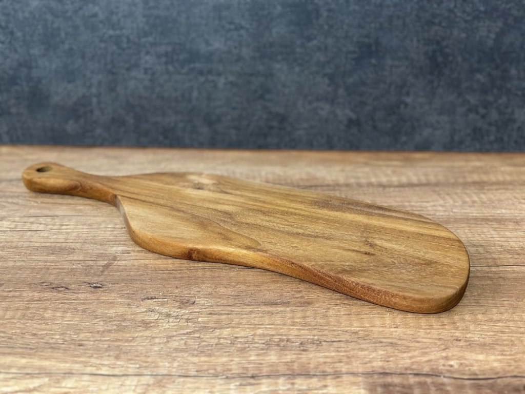 Teakové dřevo je známé svou pevností, odolností a krásnou kresbou, díky které je každý kus jedinečný. Prkénko může sloužit nejen k servírování, ale i jako dekorativní doplněk do kuchyně.