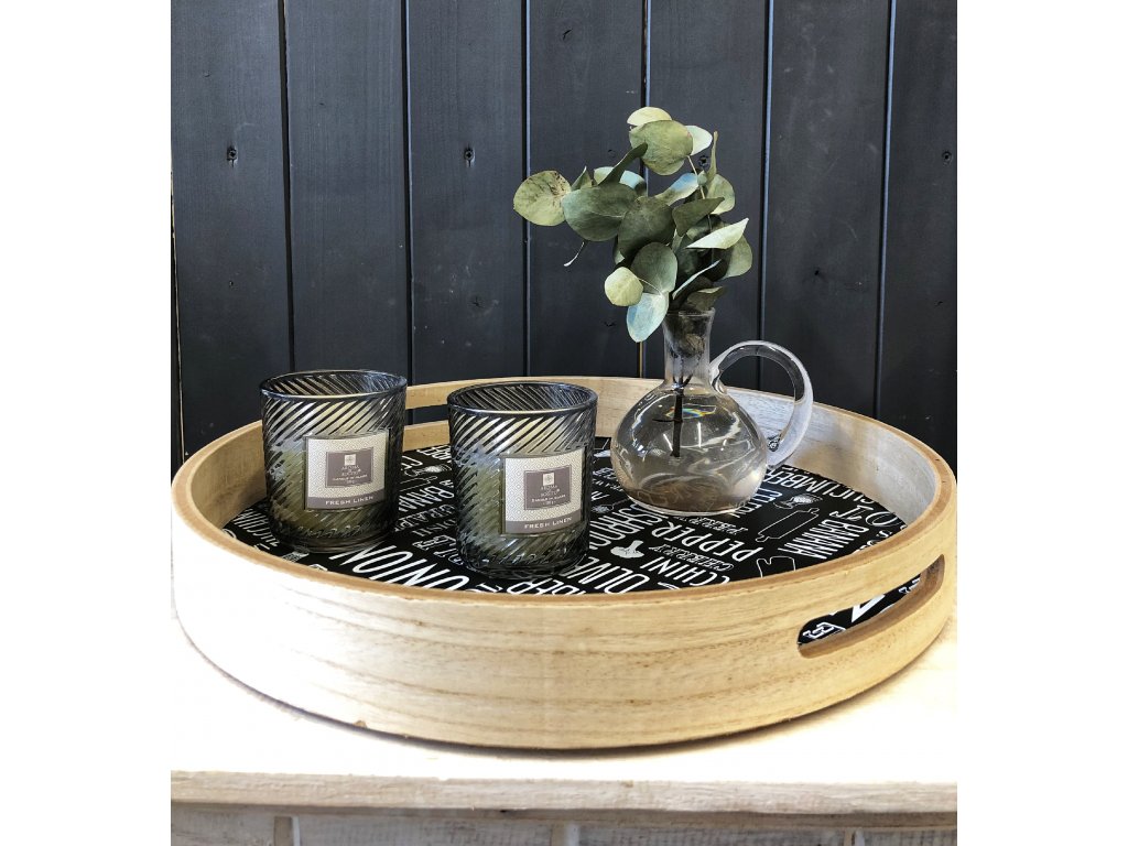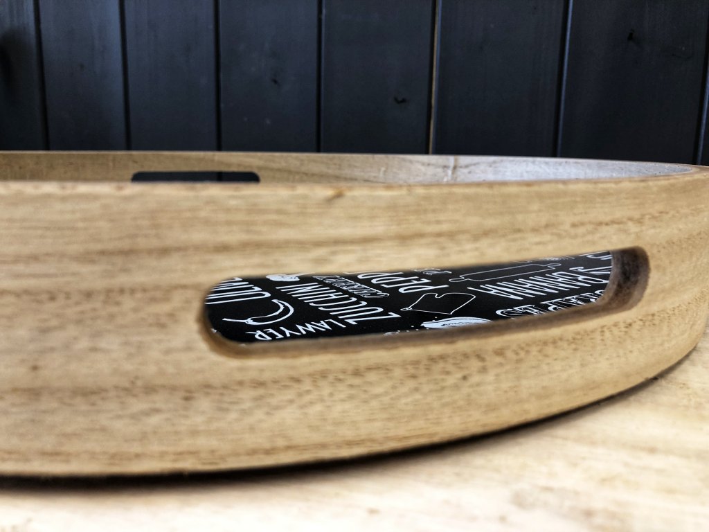 Servírovací nebo dekorační, tento podnos se dá využít na obě věci. Servírovat na něm můžete odpolední kafíčko se zákuskem, ale také ho můžete pouze nadekorovat jako my a nechat např. na konferenčním stolku. Dekorace můžete obměňovat dle nálady nebo příležitosti. Vnitřek tácu je potištěn nápisy, tác je opatřen dvěma uchy pro snadné přenesení. barva táců je světlá okolo, vnitřek černo bílý.