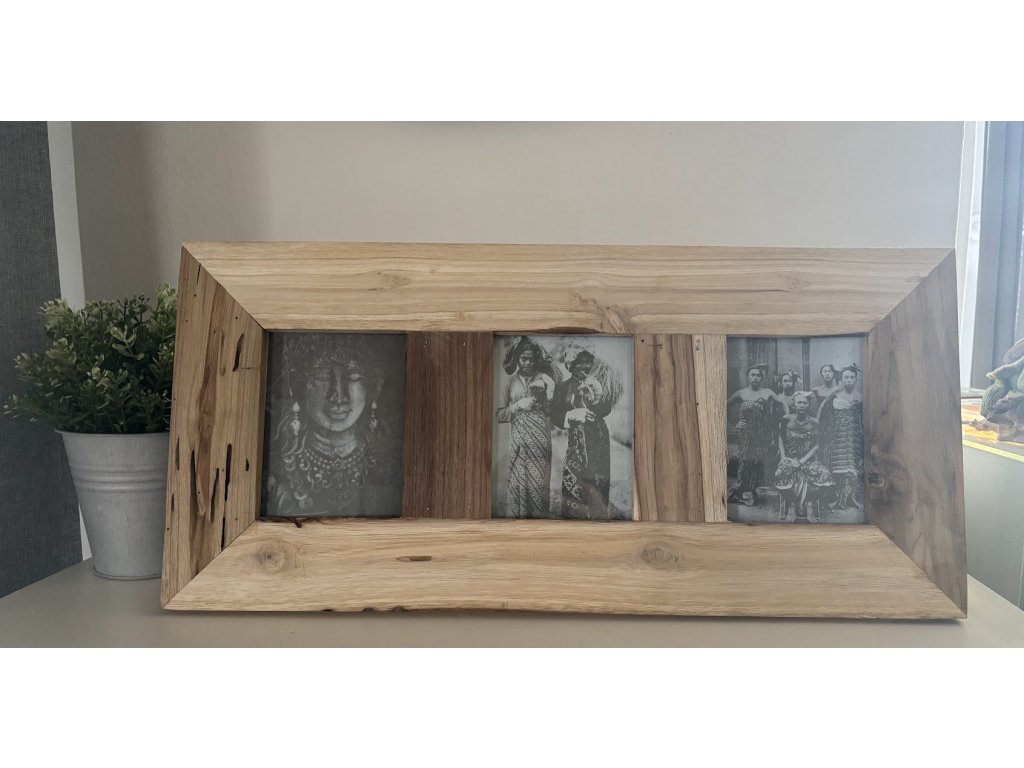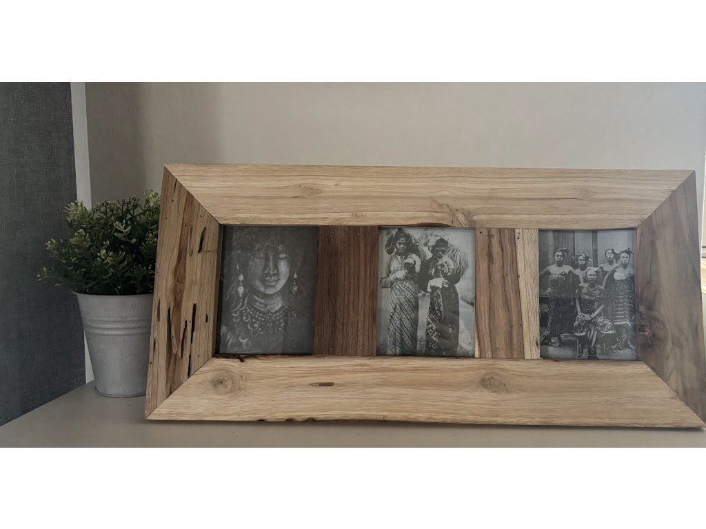 Na tento rámeček byl použit výhradně přírodní materiál. Ručně dělaný kousek na 3 rodinné fotografie bude zdobit váš interiér. Každý nedostatek na tomto rámečku je jeho přednost v originalitě. Žádný nebude stejný. Rámeček je na postavení. Každé okénko je opatřeno sklem. Ať už budou fotky černobílé nebo barevně, krásně v něm vyniknou.