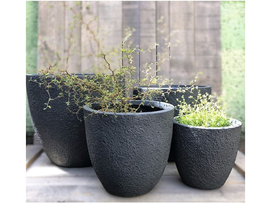 Tmavě šedé kulaté mrazuvzdorné květináče ve 4 velikostech zaplní nejednu terasu či prostor u vchodových dveří. Osázet lze čímkoliv. Každý disponuje odtokovým otvorem. Vyrobeny jsou z magnésia, jsou tedy oproti klasickým mrazuvzdorným květináčům odlehčené, ale i tak stabilní.