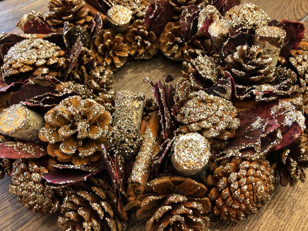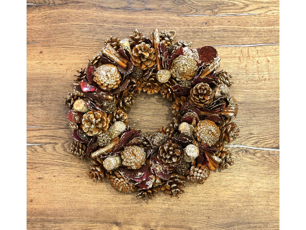 Adventní věnec je nezbytnou součástí vánočních svátků stejně jako věnec na dveře. Tento můžete použít jak na dveře tak na stůl, stačí dokoupit zápichy na svíčky. Oblíbená barva červeno zlatá je klasická barva vánoc. Každý rok je sice nový trend barvy, ale jsou tací, kteří se drží jedné barvy několik let po sobě.