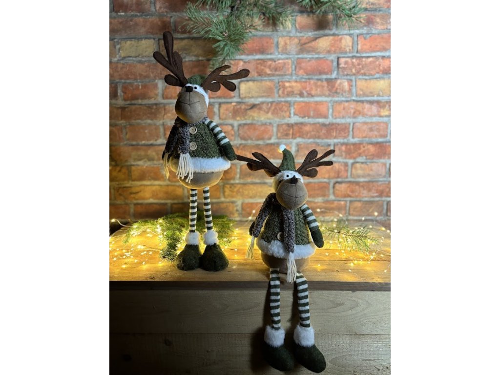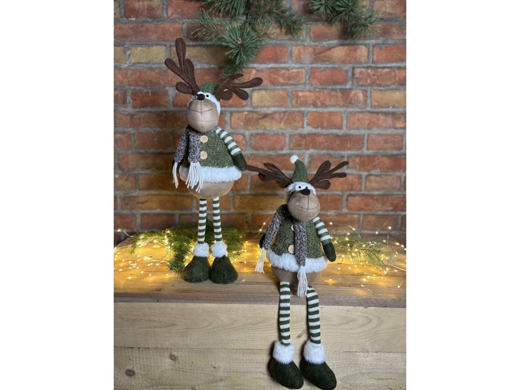 Roztomilý vánoční sob v zelených odstínech, který svým vzhledem navodí tu pravou sváteční náladu. Oblečený do pruhovaných punčoch a rukávů a doplněný o zelený svetřík působí veselým a přátelským dojmem.