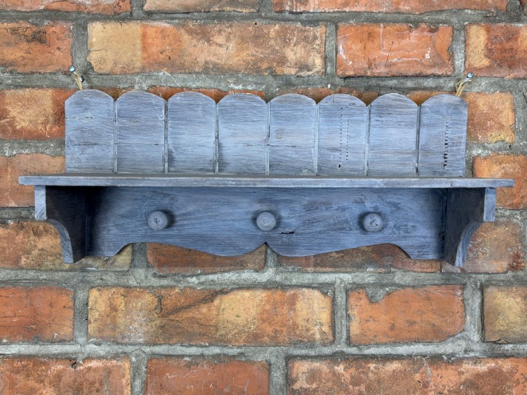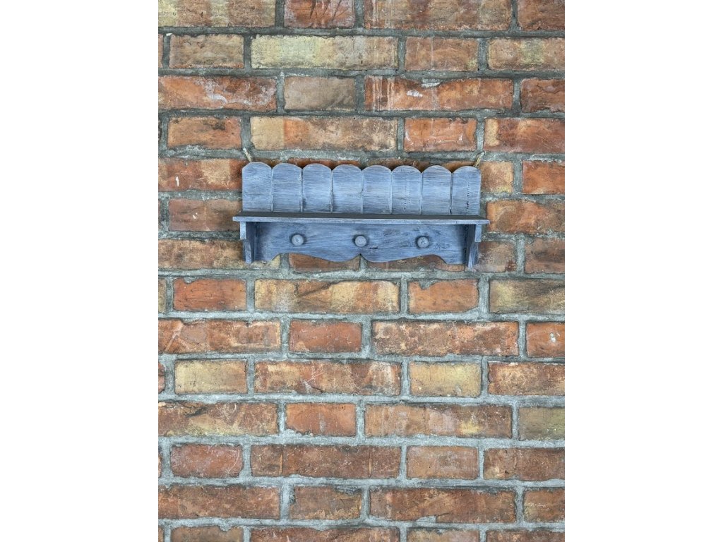 Tento zdobný kousek nábytku ve Vintage stylu vnese do Vašeho interiéru lehkost a originalitu. Šedá polička, kterou můžete umístit v kuchyni nebo jídelně a opatřit ji tak dekoracemi či doplňky, které rádi vystavujete. Polička má 3 úchytky na které můžete zavěsit třeba utěrku, hrneček či jiné pro vás důležité věci. Na zadní straně 2 háčky ke snadnému zavěšení.