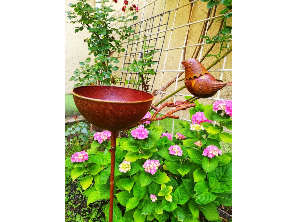 Zápich je oblíbenou dekorací na zahradu. Když už nějaký pořizujete, uvažujte, zda by nemohl mít i jiné využití než jen jako dekorace. Krásné pítko nebo krmítko pro ptáčky se vždy hodí a oni vám za to budou vděční. Toto je v barvě rezavějícího kovu s dekorací ptáčka u misky. Užijte si pohled na tuto dekoraci až se tam budou ptáci slétávat pro trochu vody.