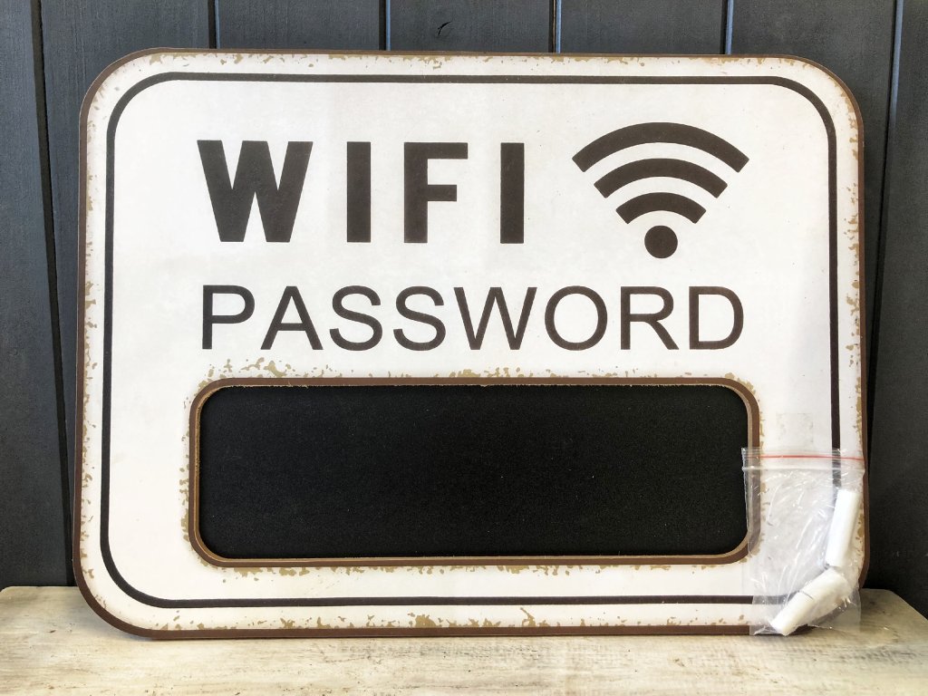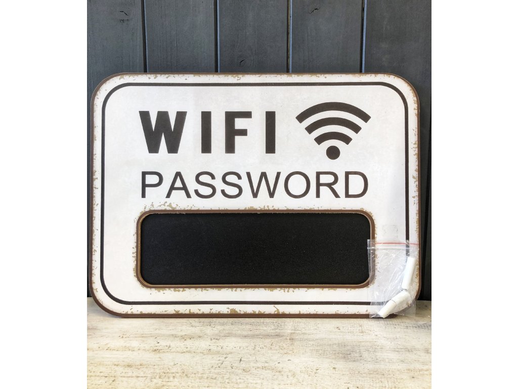 Máte restauraci, kavárnu, pojízdné občerstvení a chcete svým návštěvníkům dát vše potřebné, aby byly spokojení? Všichni víme, že dnešní doba se bez internetu neobejde, ať už na sdílení fotek, čtení zpráv nebo referencí na podnik, ve kterém zrovna jsme. ne každý má dostatek dat a tak uvítá, když se může připojit zdarma a to formou wifi. Tato cedulka je přesně pro tyto případy, je dřevěná, designem odření, na zavěšení a obsahuje tabulku s křídou. Napište své heslo přímo na ni a každý kdo přijde se už nebude muset ptát a rovnou si heslo opíše.