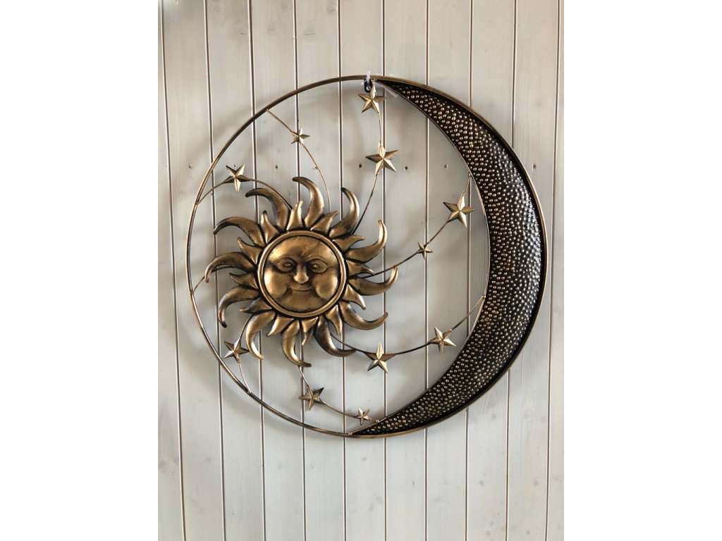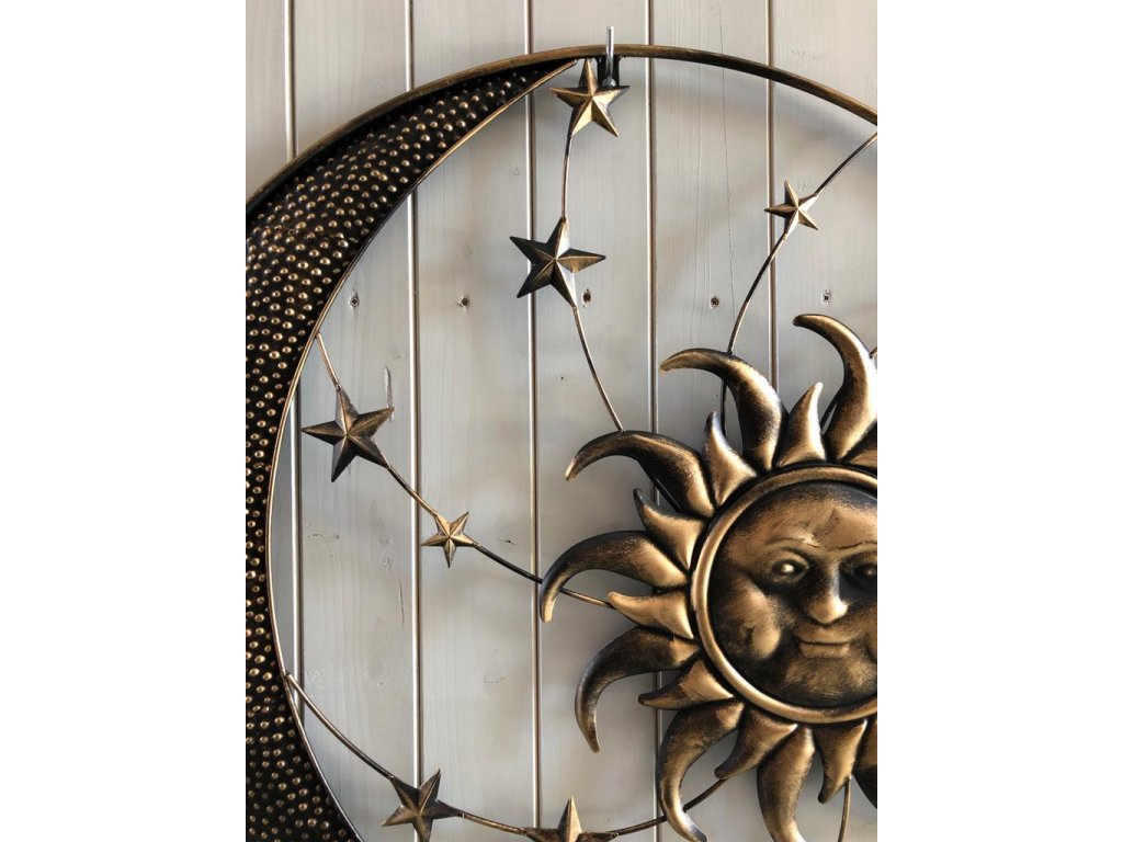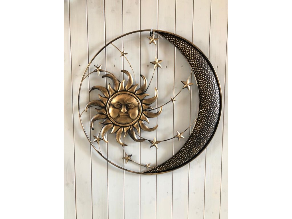 Noc či den nebo obojí? Poletující hvězdy při svitu měsíce a ranní paprsky slunce v okně. I to si můžete pod touto dekorací představit. Okouzlující kovová dekorace na zavěšení zútulní nejen vám domov, ale i zahradu. Propracovaný design, který upoutá pohled každého. Vybírat můžete pravou nebo levou stranu měsíce.