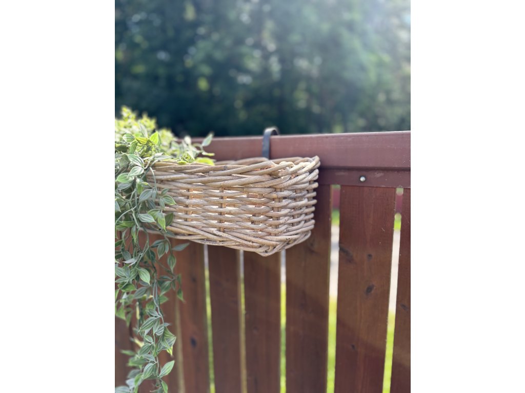 Závěsné květináče z ratanu jsme měli zatím pouze kulaté na řetízek nebo menší na provazu. Tyto jsou jiné a za nás super na terasu, balkon či plot. Jsou závěsné na kovové ohyby. Ohyb je po celé výšce a tak je dostatečně pevný.
