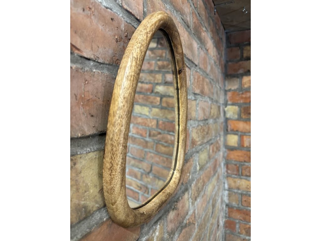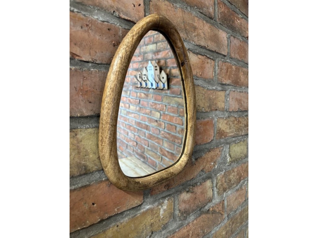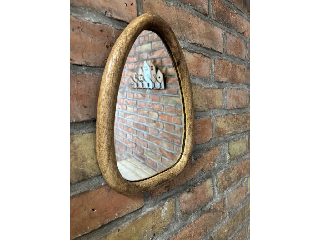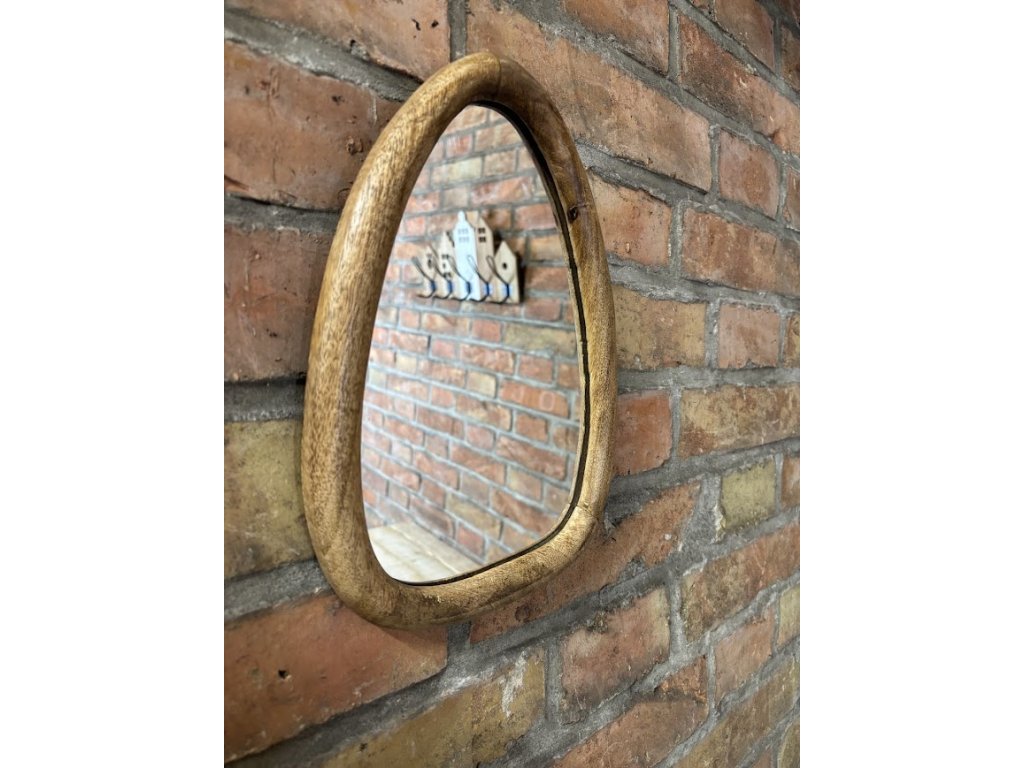 Originální zrcadlo, které zaujme na první pohled svým nepravidelným tvarem a masivním dřevěným rámem. Přírodní struktura dřeva dodává každému kusu jedinečný charakter a vnese do interiéru teplo i útulnou atmosféru. Skvěle se hodí do moderních i rustikálních prostor – krásně vynikne na cihlové stěně, v předsíni, ložnici i obývacím pokoji.