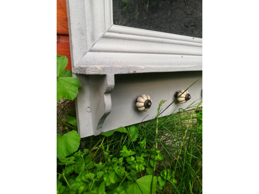 Součástí jsou tři praktické háčky s keramickými úchytkami, které dodávají celku romantický detail a zároveň nabídnou prostor pro zavěšení klíčů, šperků či drobných dekorací.