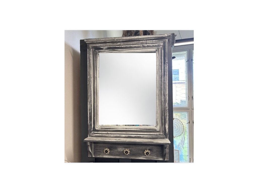 Elegantní zrcadlo, které zaujme na první pohled svou jemně patinovanou šedou barvou v antik stylu. Toto zrcadlo je nabízeno i klasické šedé. Masivní rám s výraznou strukturou působí rustikálně, ale zároveň velmi vkusně – skvěle doplní interiér v provensálském, vintage i venkovském stylu.